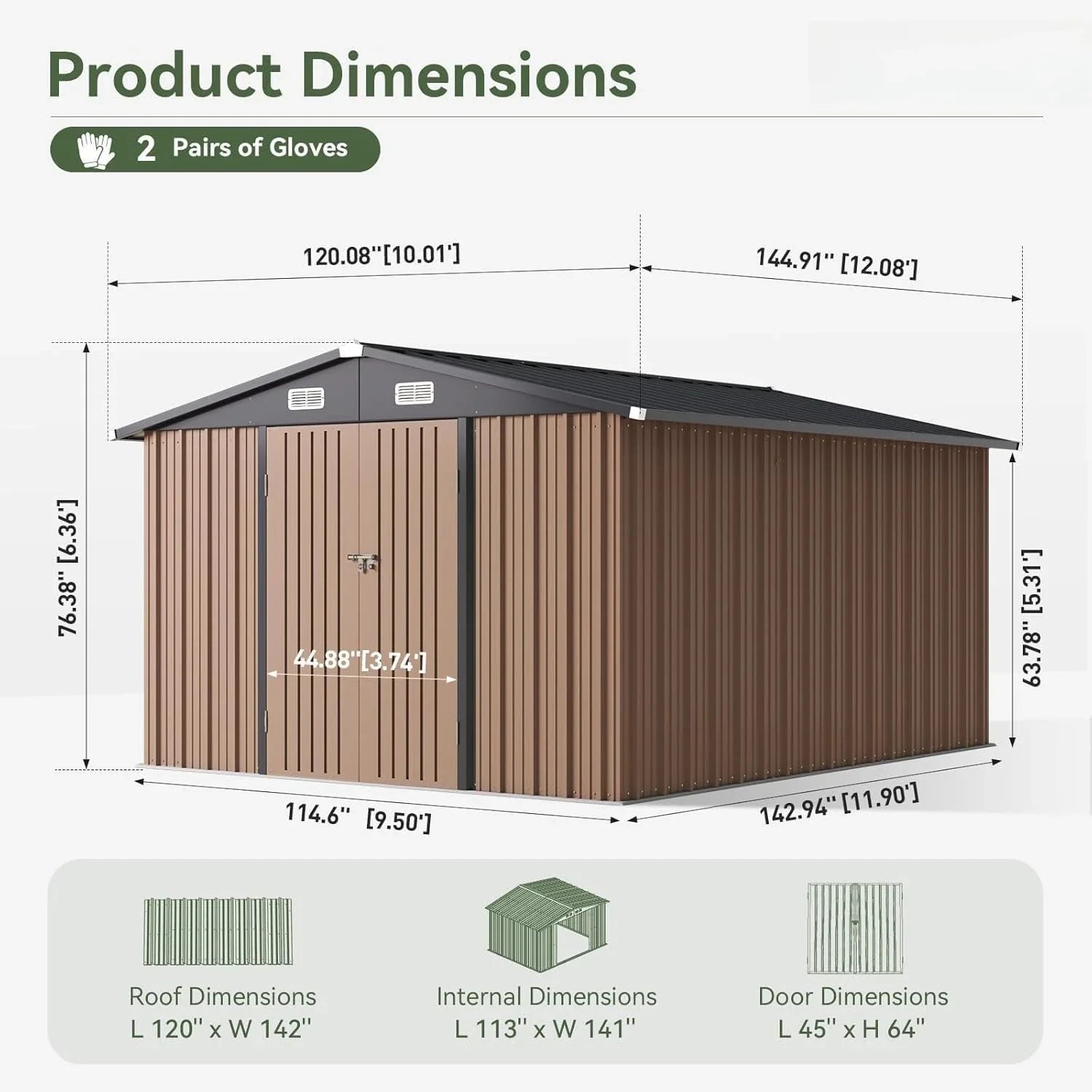 10 x 12FT Outdoor Storage Shed with Double Hinged Large Door Utility Garden Shed with Lockable Door & Sloped Roof
