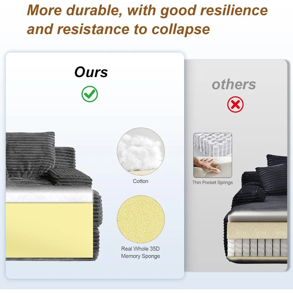 110" Modular Sectional Couch Sofa,Boneless Couches for Living Room,3-Seater Cloud Sofa with 2 Movable Ottomans U Shaped