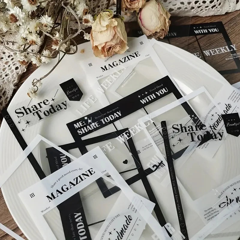 15 Sheets Of Transparent Retro Adhesive Collage Hand Account Decoration Material Sticker Pack, Album Scrapbooking Decor Supplies