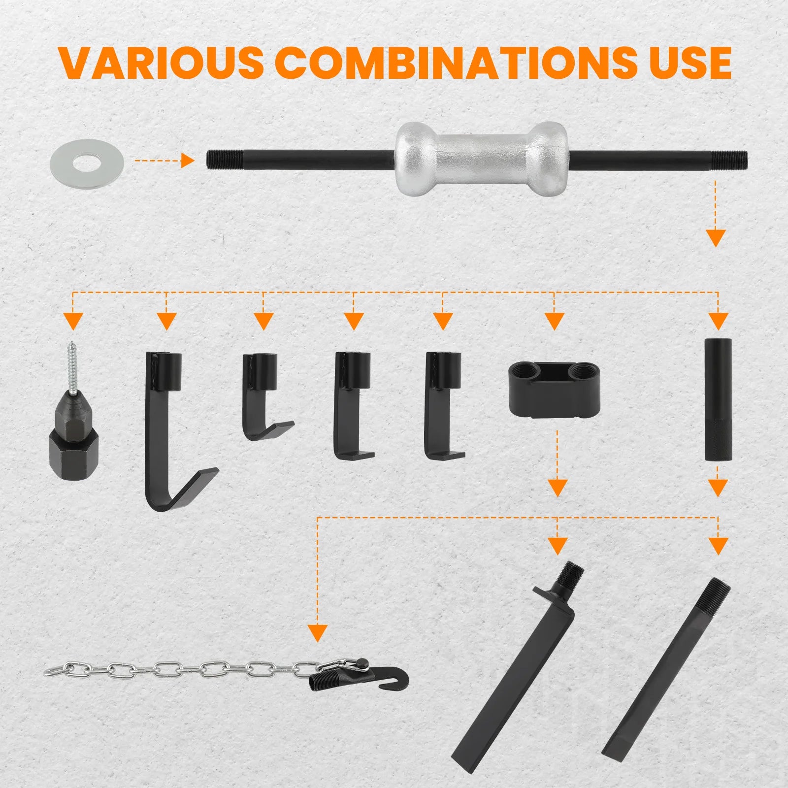 18Pcs Slide Hammer Dent Puller Auto Body Repair Bearing Axle Remover Hex Nut Tool
