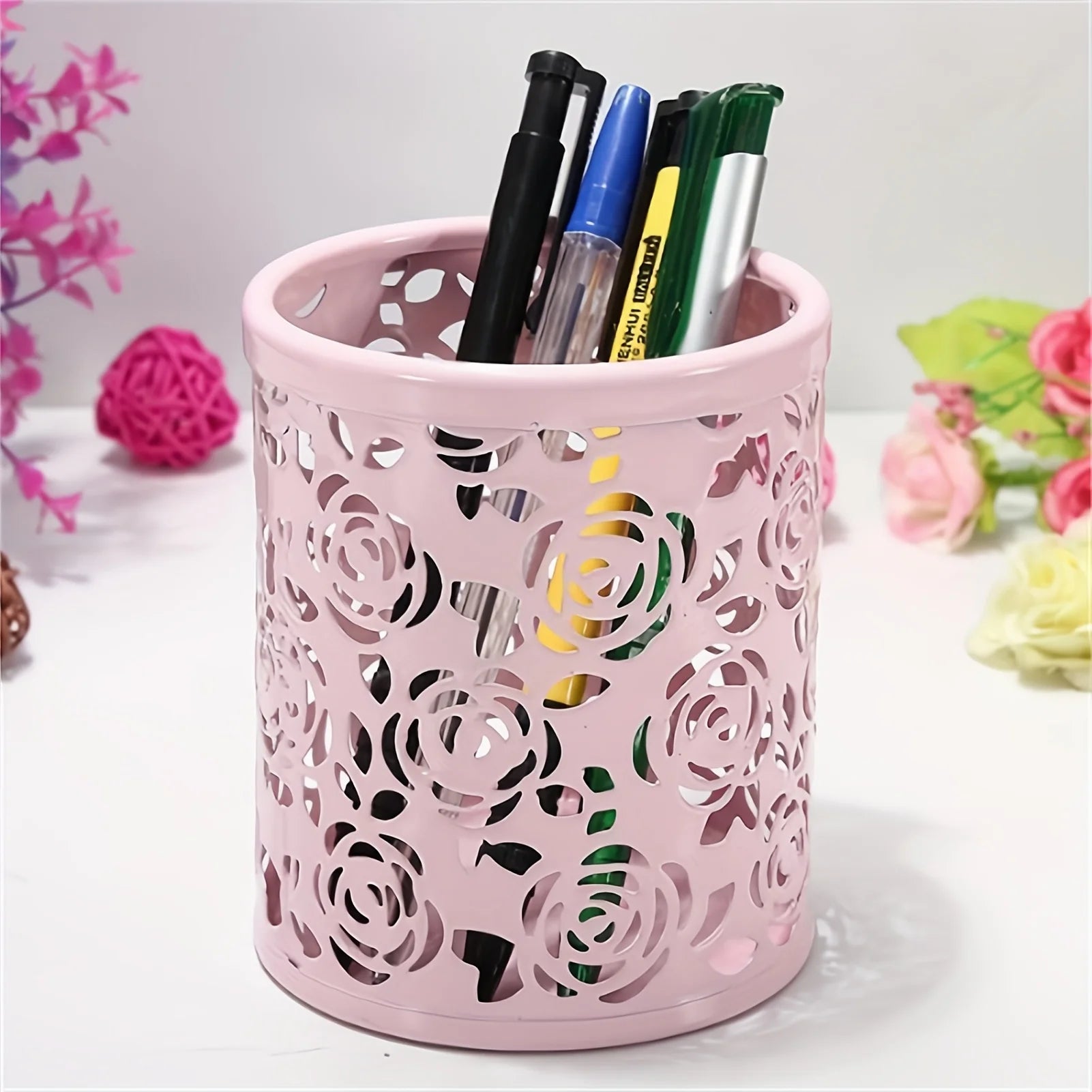 1pc Rose Flower Pen Holder, Durable, Wear-Resistant Desk Organizer for Students, Teachers, and Office Supplies, Stationery Rack