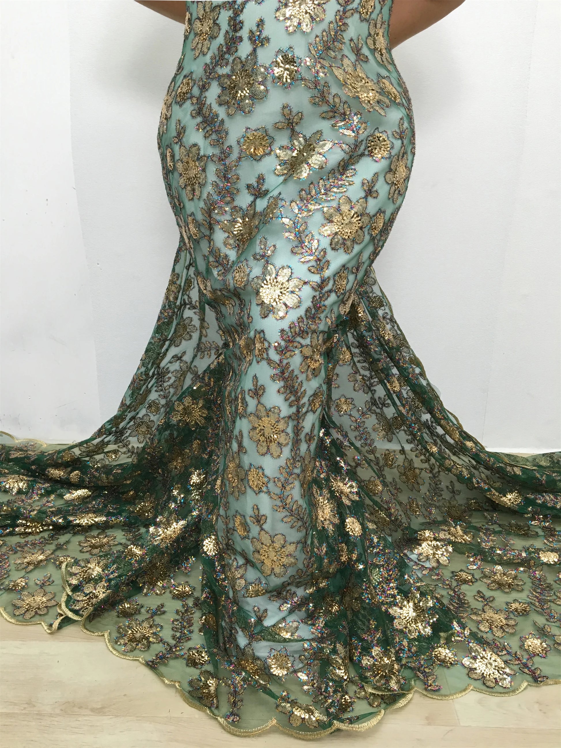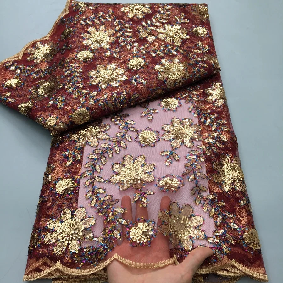 20225 French Flocking Tulle Lace Fabric High Quality 5 Yards Embroidered Sequins African Nigerian Lace Fabric for women Sewing