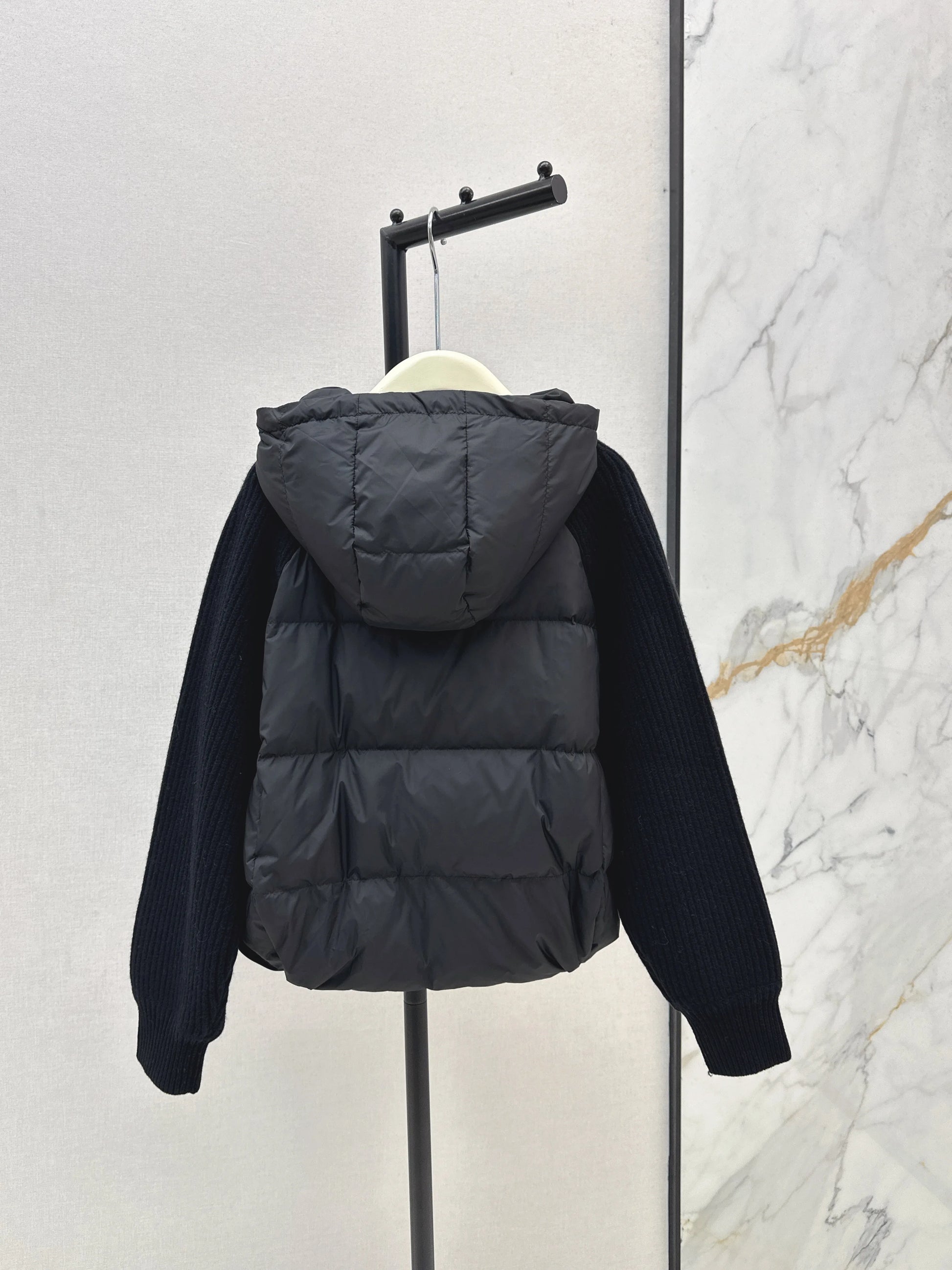 2025 autumn and winter new women's down jacket warm knitted patchwork hooded patchwork wool sleeves down jacket
