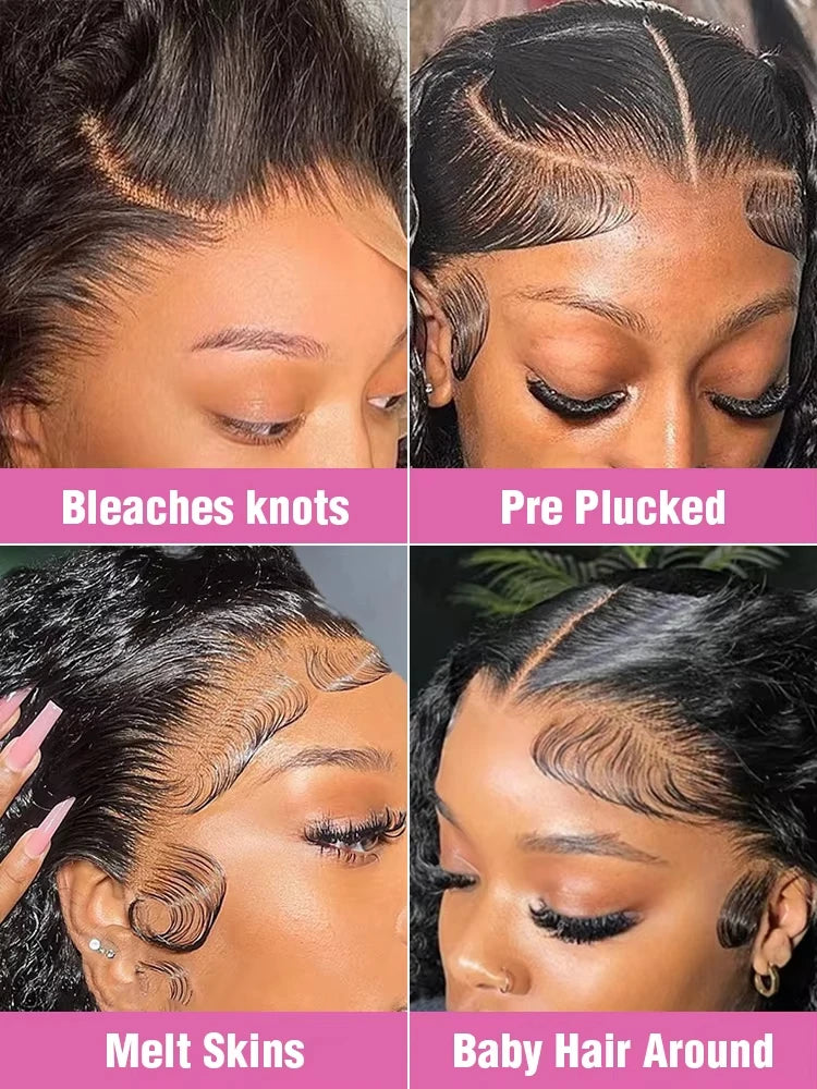 220 Density 40 44 Inch13x6 HD Bone Straight Lace Frontal Human Hair Wigs Brazilian Black 360 Full Lace Wig For Women Preplucked