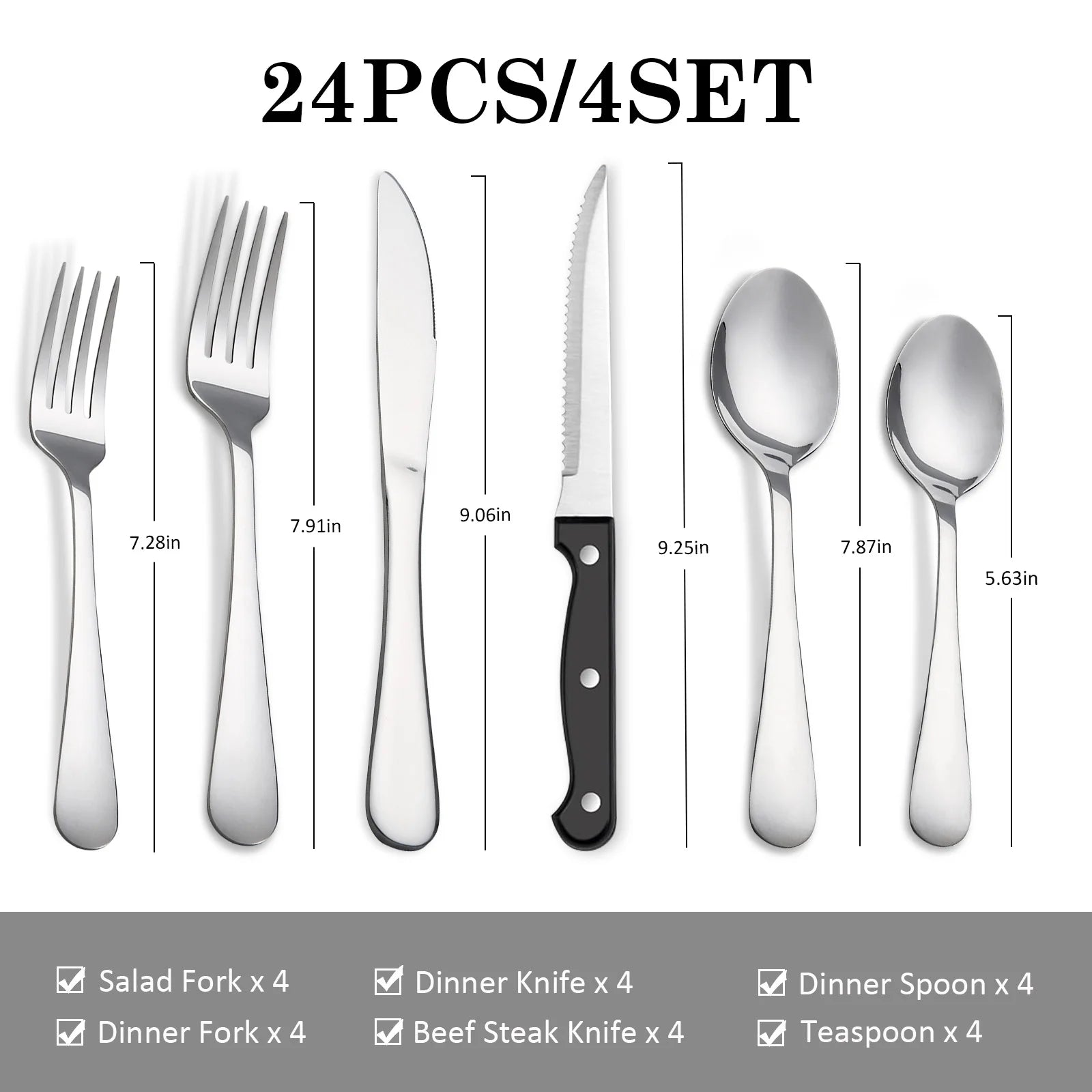 24 pcs flatwar Stainless Steel Tableware Set 24 Pieces 4 Person Cutlery Set with Steak Knives Dinner Fork Spoon for Home Part