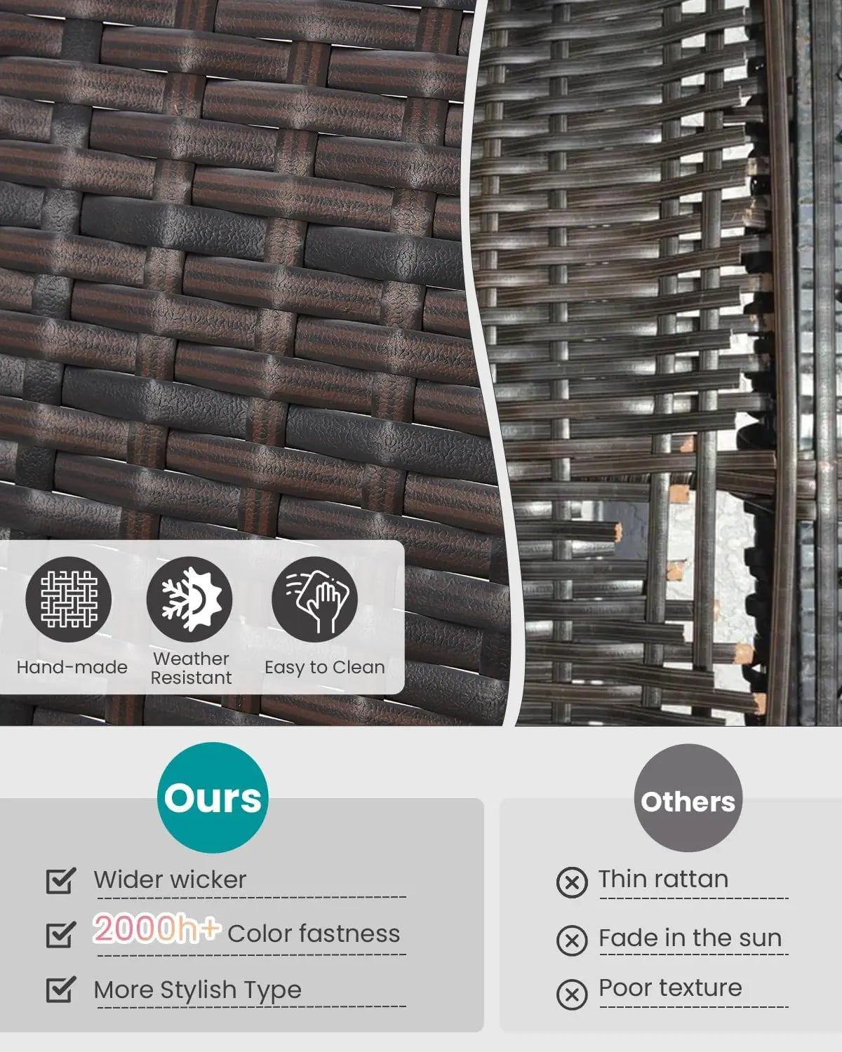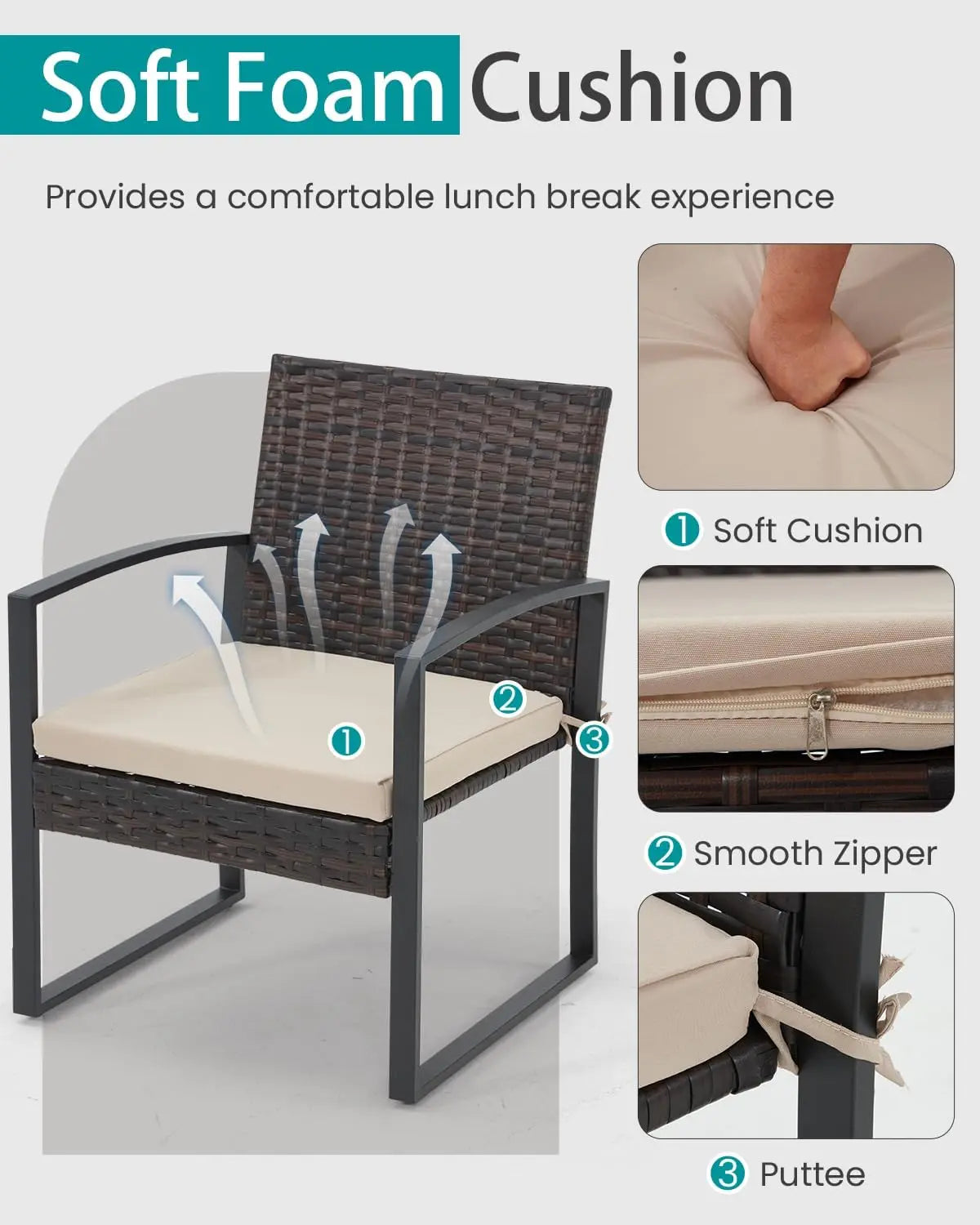 3 Pieces Patio Furniture Set, Outdoor Rattan Bistro Set with Coffee Table, Durable Steel Frame with Strapped Cushions