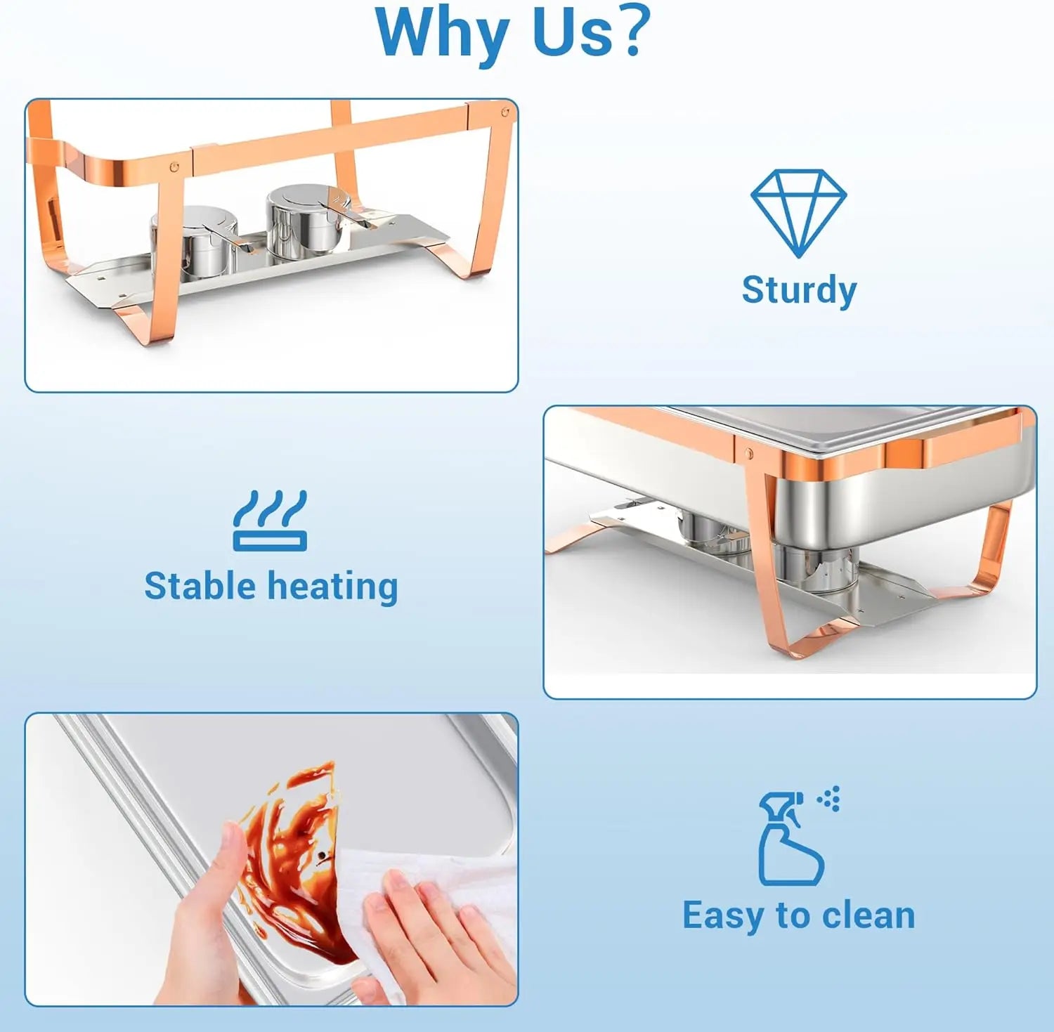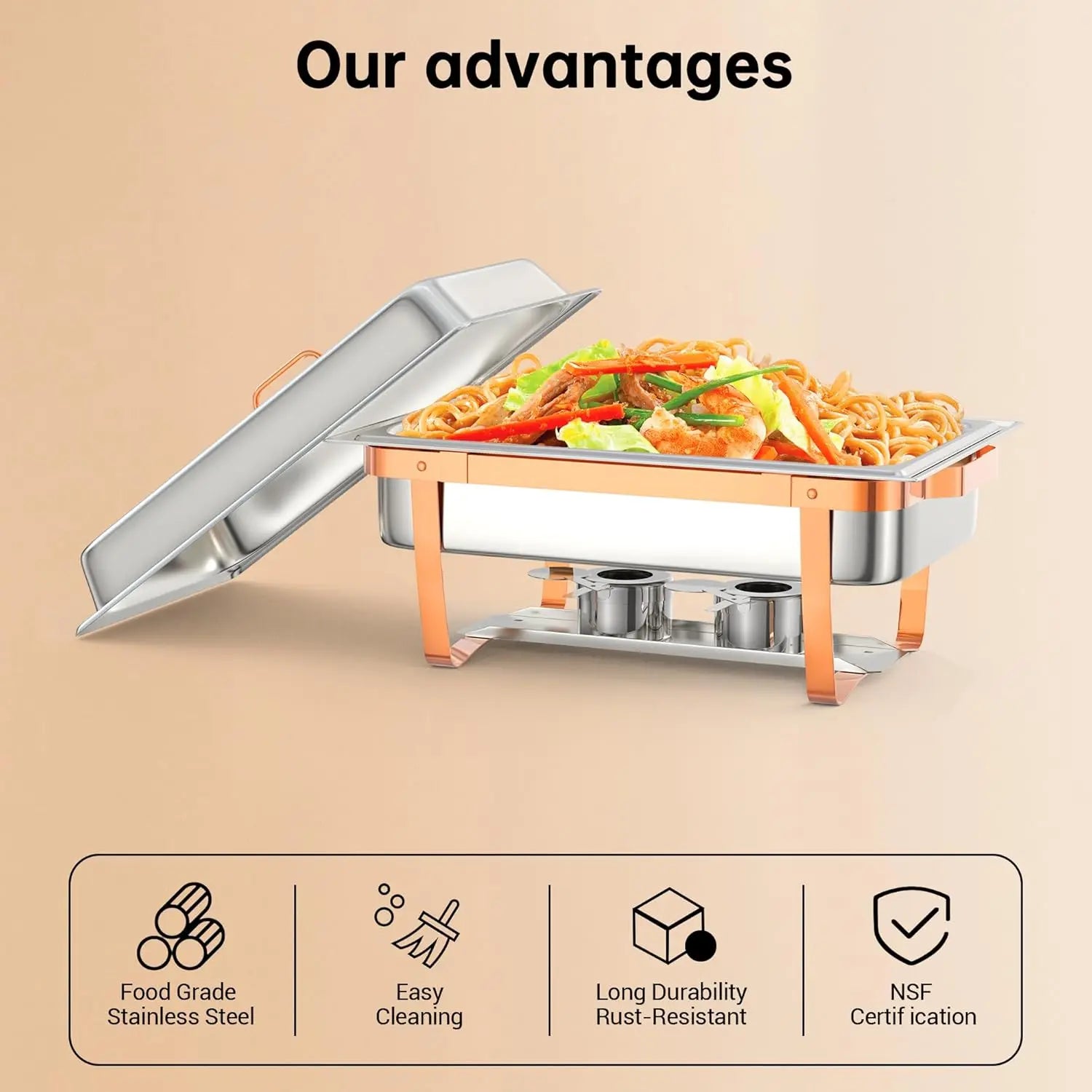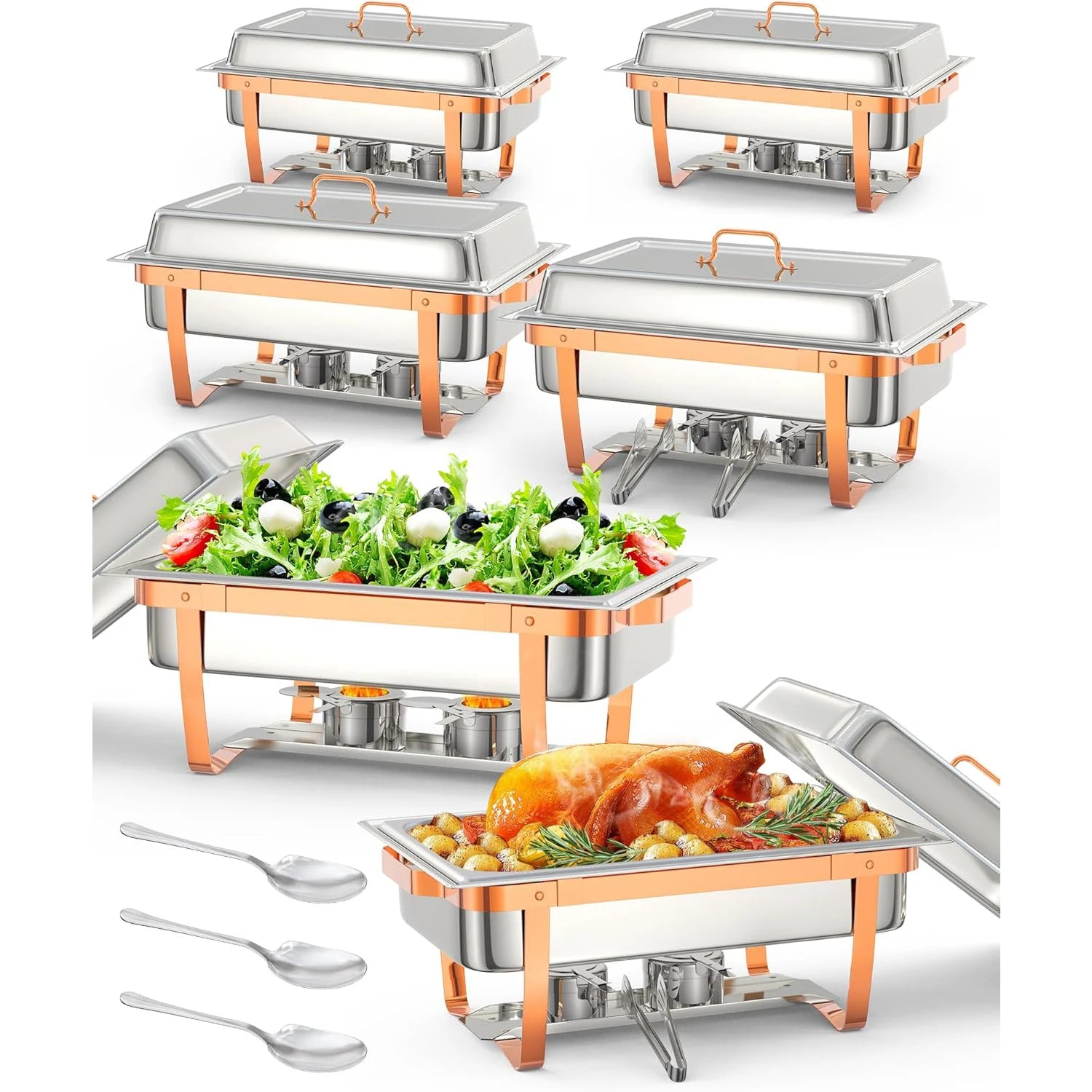 4 6 Packs Chafing Dishes for Buffet Stainless Steel Chafers and Buffet Warmers Sets, Rectangle Catering Food Warmers for Kitchen