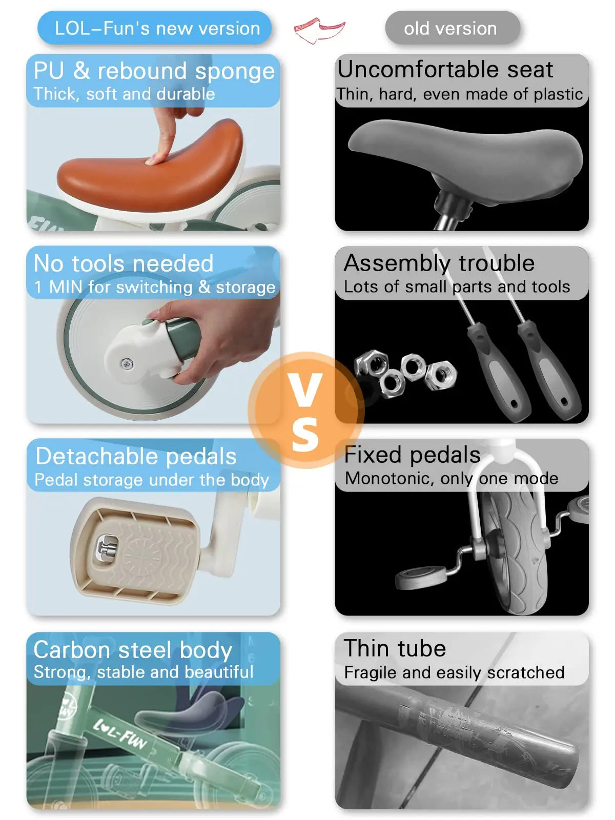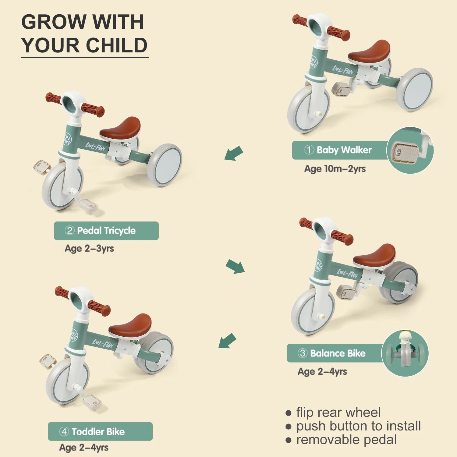 4 in 1 Toddler Balance Bike for 1-4 Years Old Boys Girls Gift, 3 Wheel Kids Tricycle with Easy Assembly Removable Pedal