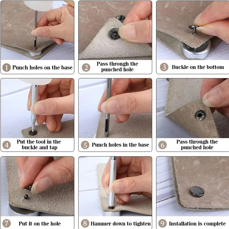 50 Sets Leather Snap Fasteners Kit 10mm Black Metal Snap Buttons with 4pcs Snap Fastener Installation Tools for Sewing Clothing