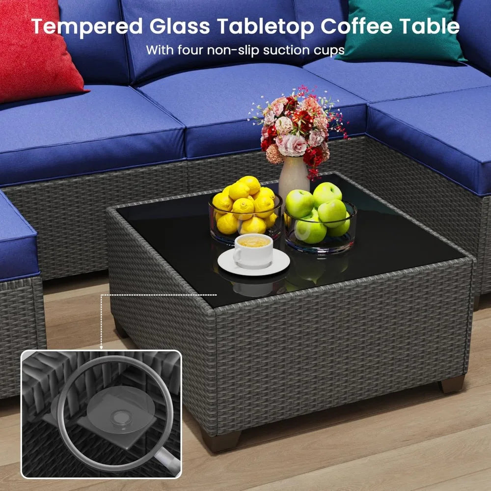7 piece outdoor patio furniture set, outdoor sectional furniture, rattan & wicker modern modular conversation set sofa couch w/w