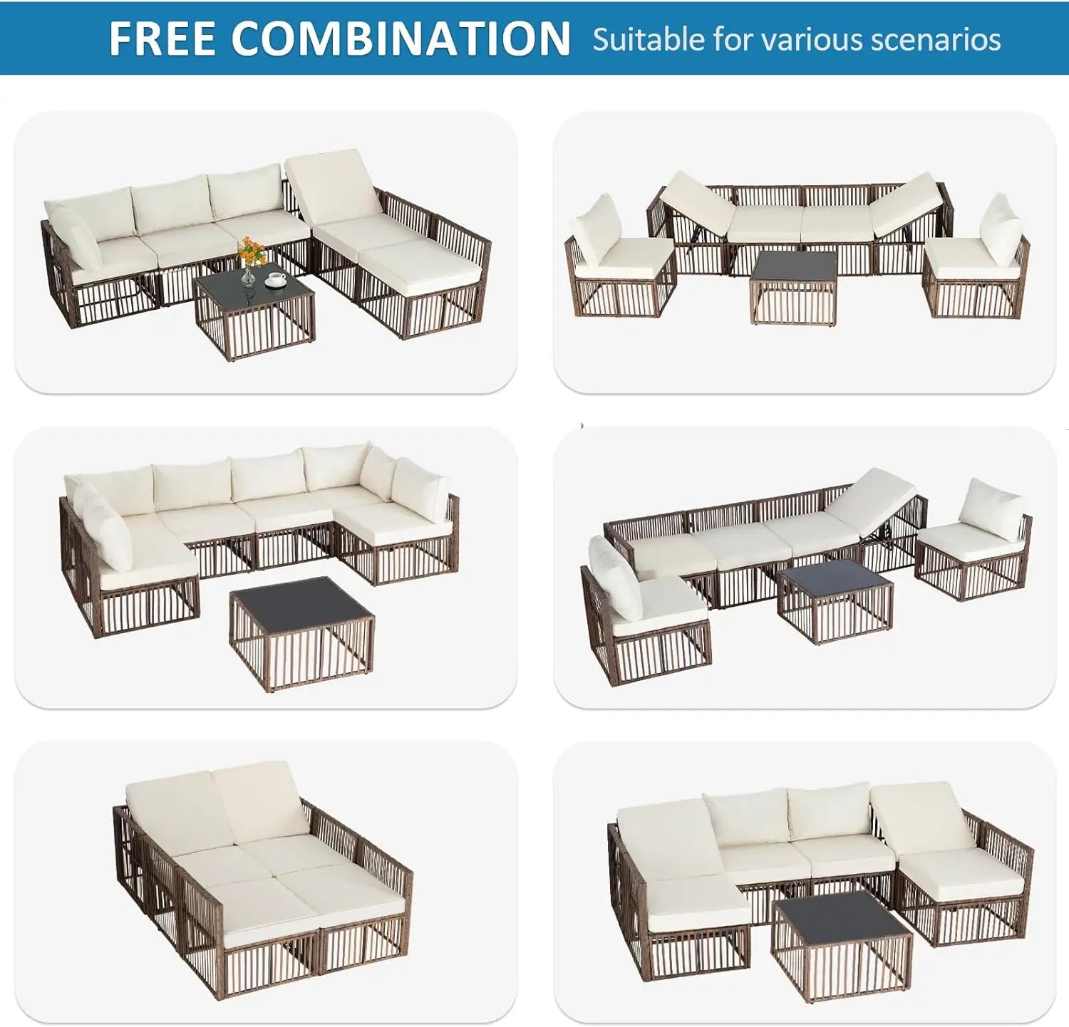 7 Pieces Outdoor Patio Furniture Set, Wicker Outdoor Sectional Conversation Couch Set with Adjustable Backrest Sofa