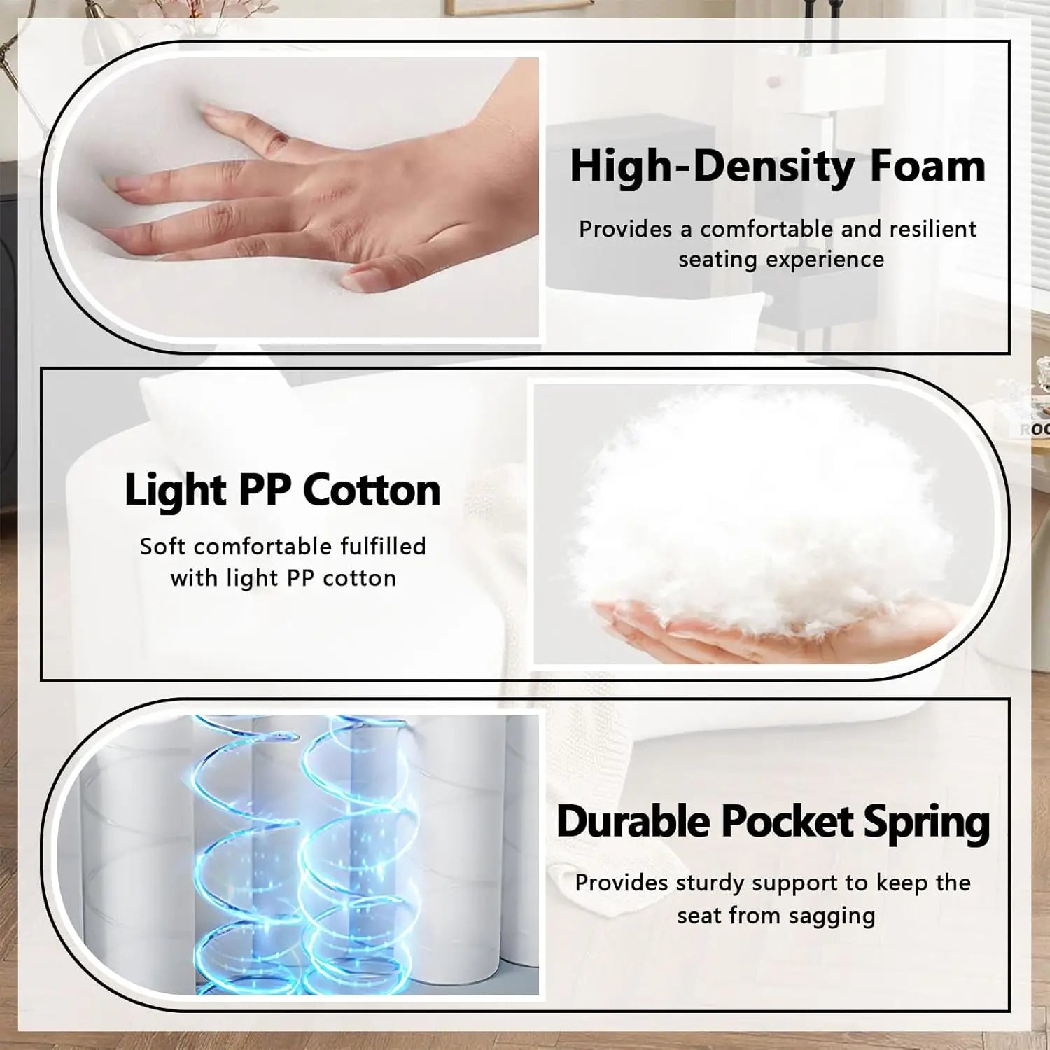 80“ Curved Loveseat for Small Spaces, White Curved Couches for Living room, Compression Sofa in a Box with 2 Pillows,