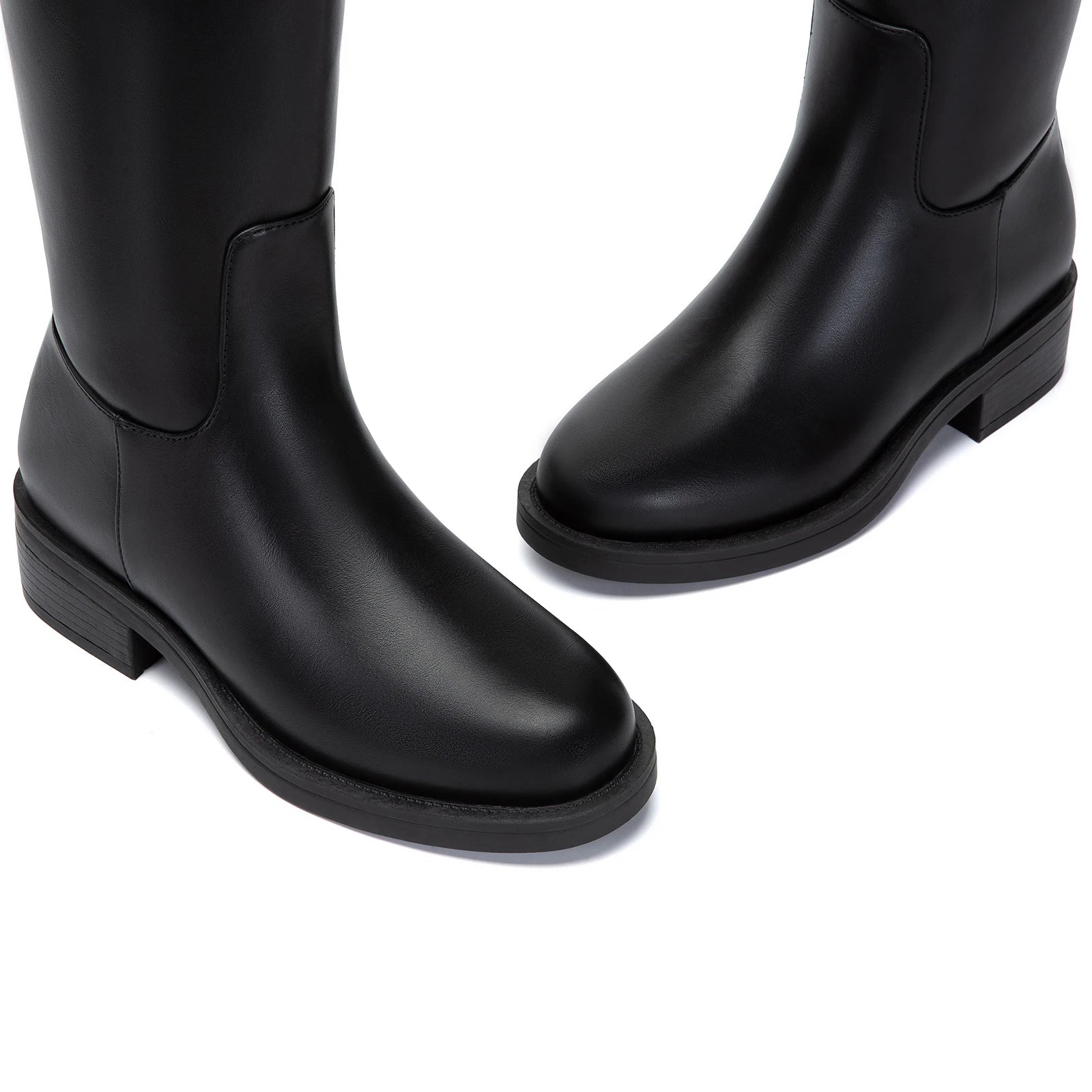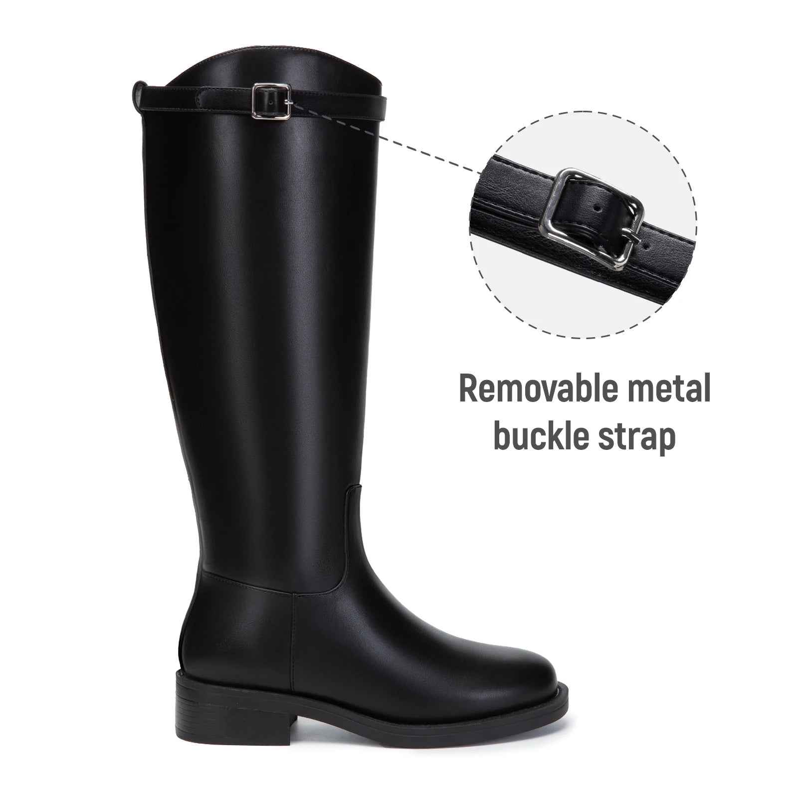 Athlefit Women's Knee High Riding Boots Round Toe Low Heel Tall Boots Pull On Long Booties with Buckle