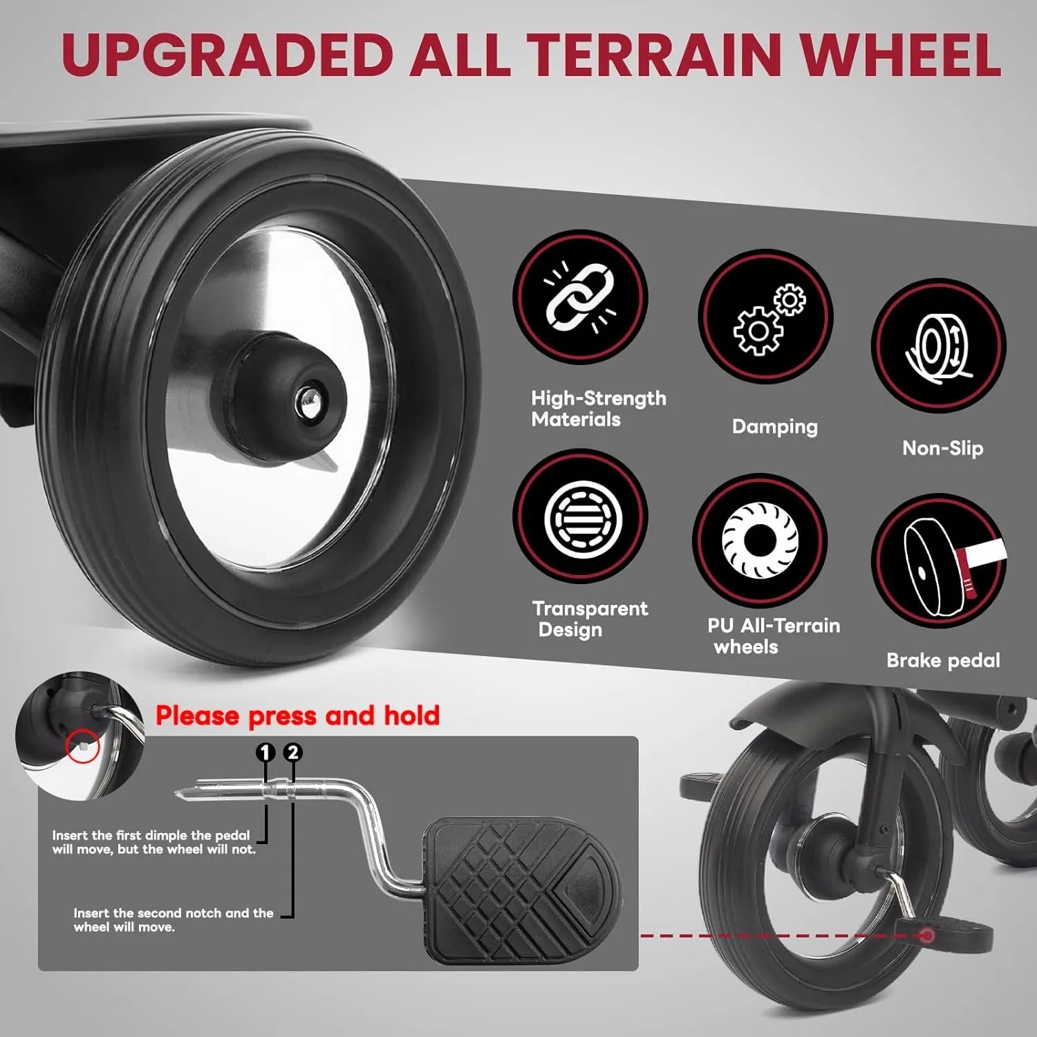 Baby Tricycle,7 in 1 Foldable Trike for Kids age 6M+ to 5 Years,Headlights.1-Step Brake Folding Pedal, Extended Canopy