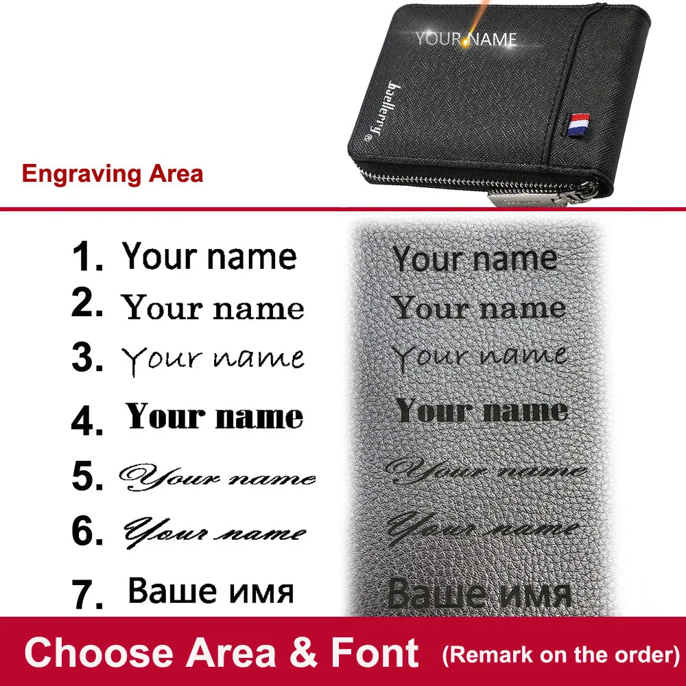 Baellerry Mini Men Card Wallets Name Print 9 Card Holders Zipper Card Wallet PU Leather Thin Male Card Purse Mini Carteria