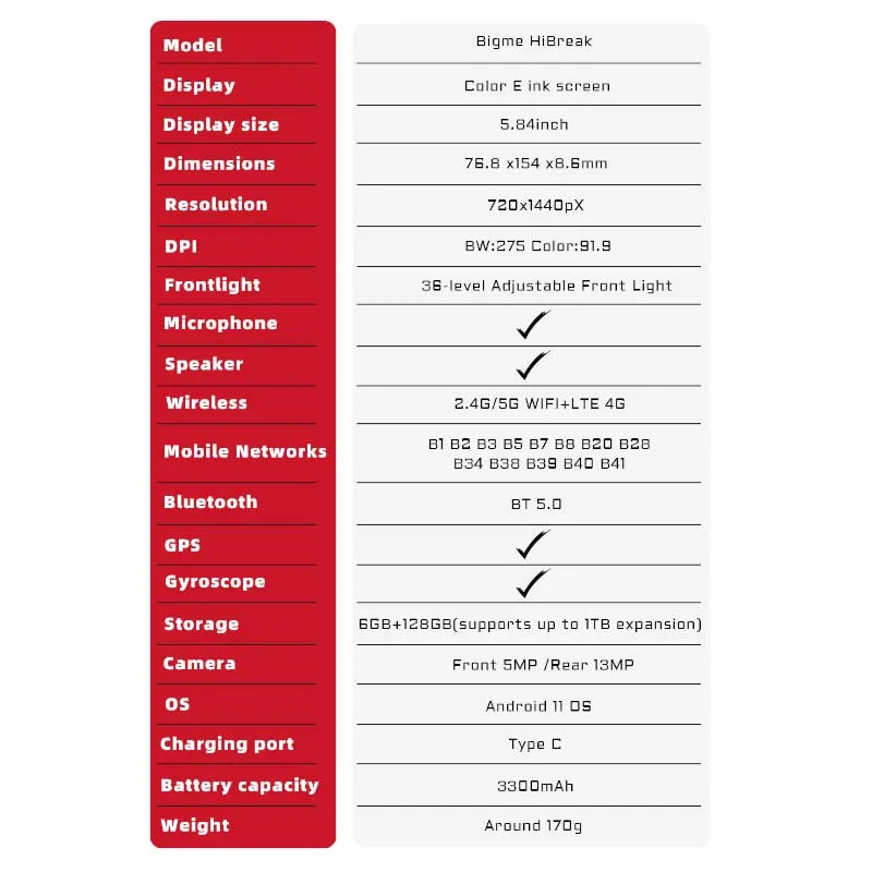 Bigme Hibreak 5.84'' Electronic ebook reader and E-ink Screen smartphone Eink Book Ereader Android11 Support Google Play