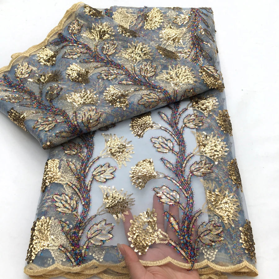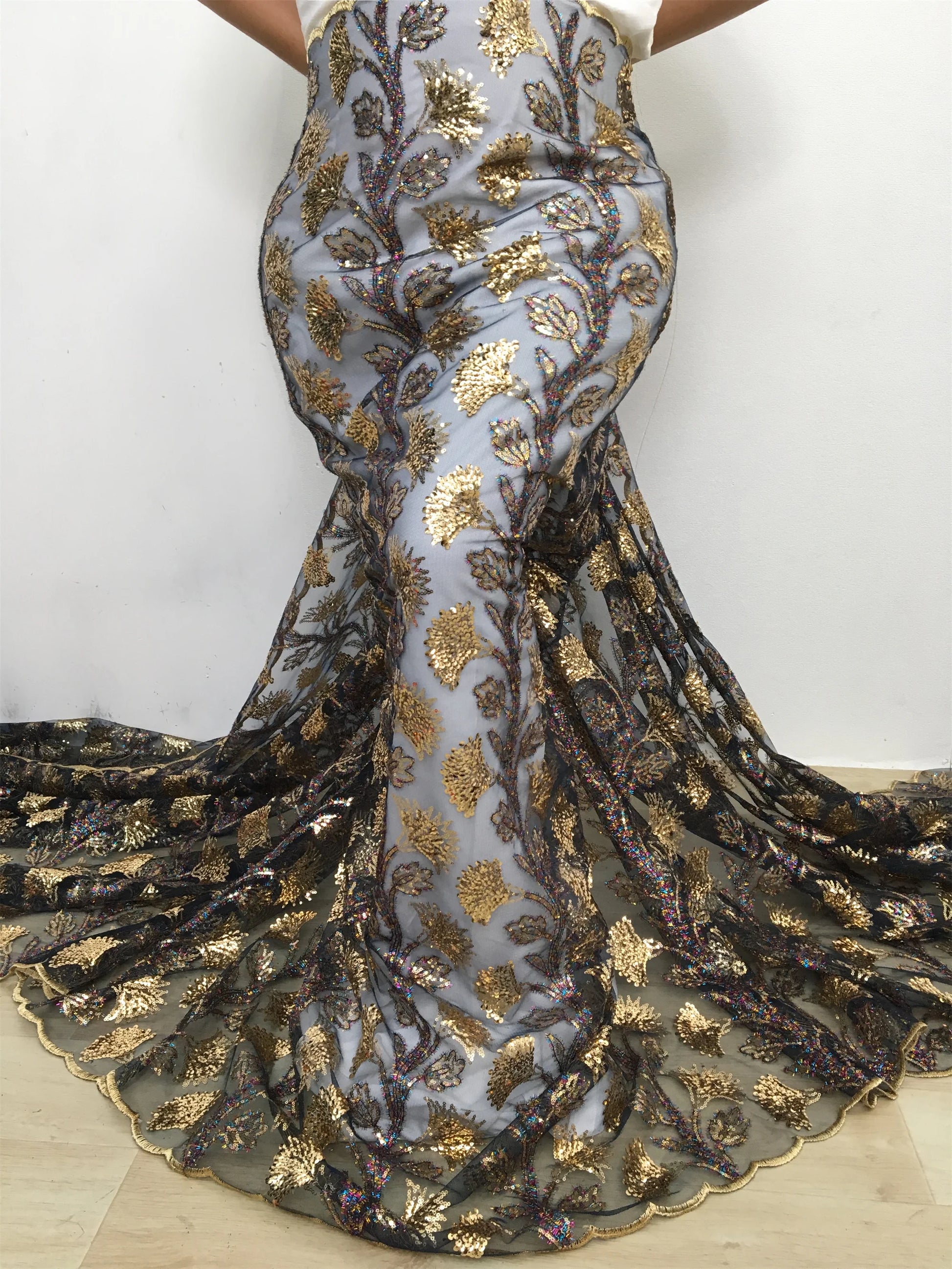 Black French Mesh Lace Fabric Sequins Flocking Bride Dress 2025 High Quality African Lace Fabric 5 Yards Nigerian Tulle Lace Sew