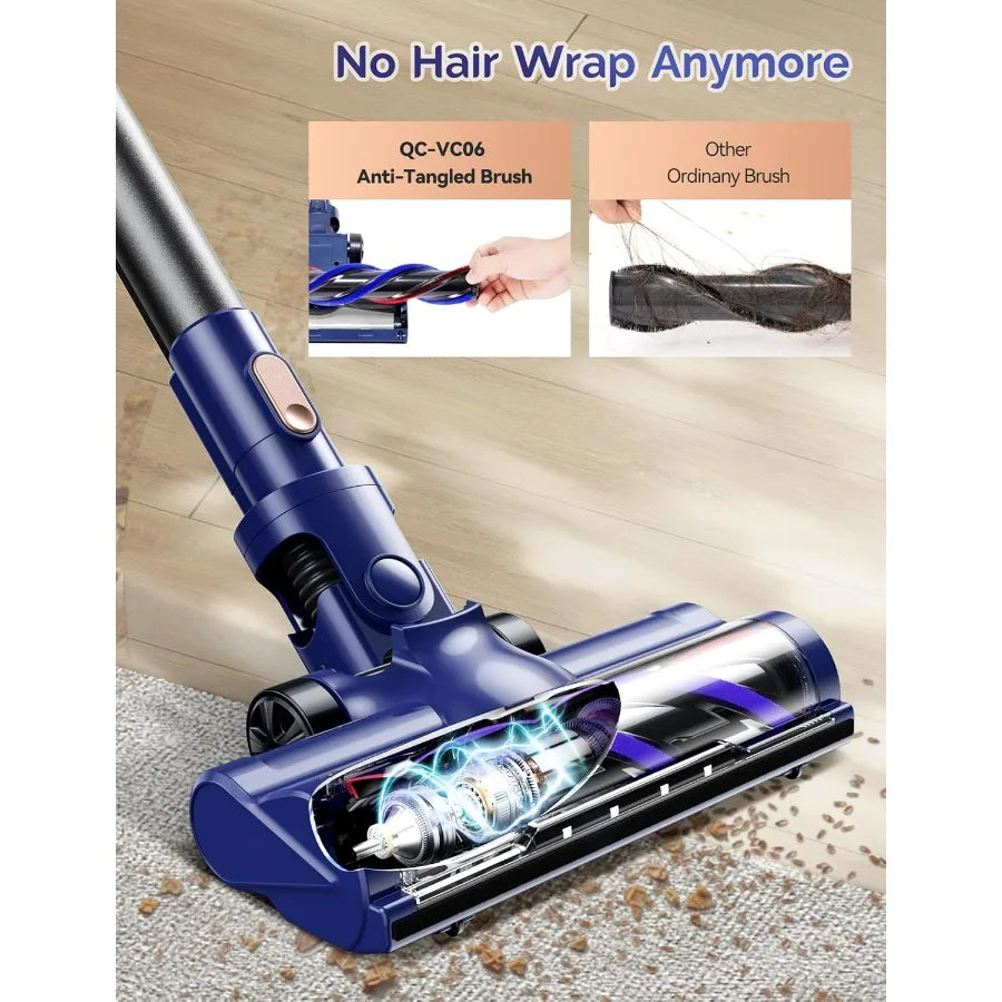 Cordless Vacuum Cleaner, 23kpa Powerful Lightweight Stick Vac with LED Headlights, 3 Modes, 45 Mins Runtime, Rechargeable Portab