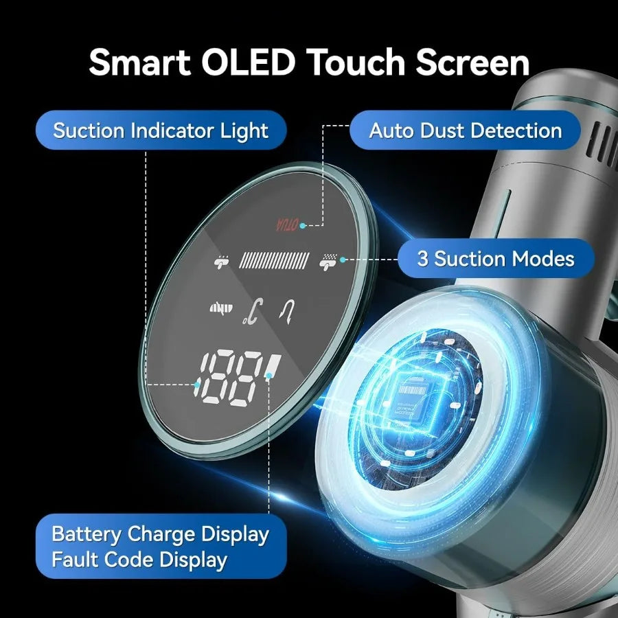 Cordless Vacuum Cleaner,600W/≥45Kpa Stick Vacuum with Touch Screen,Max 60 Mins Runtime,Wireless Vacuum Cleaners for Home, Anti-T