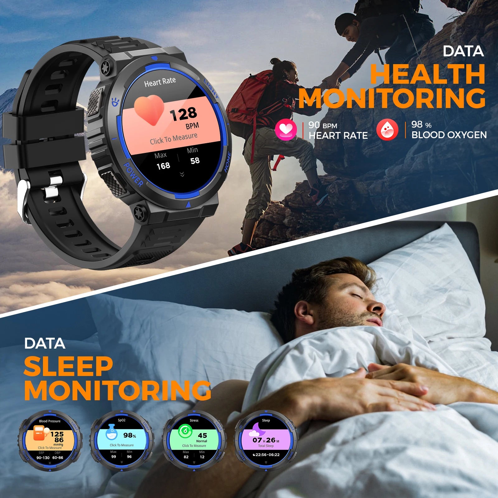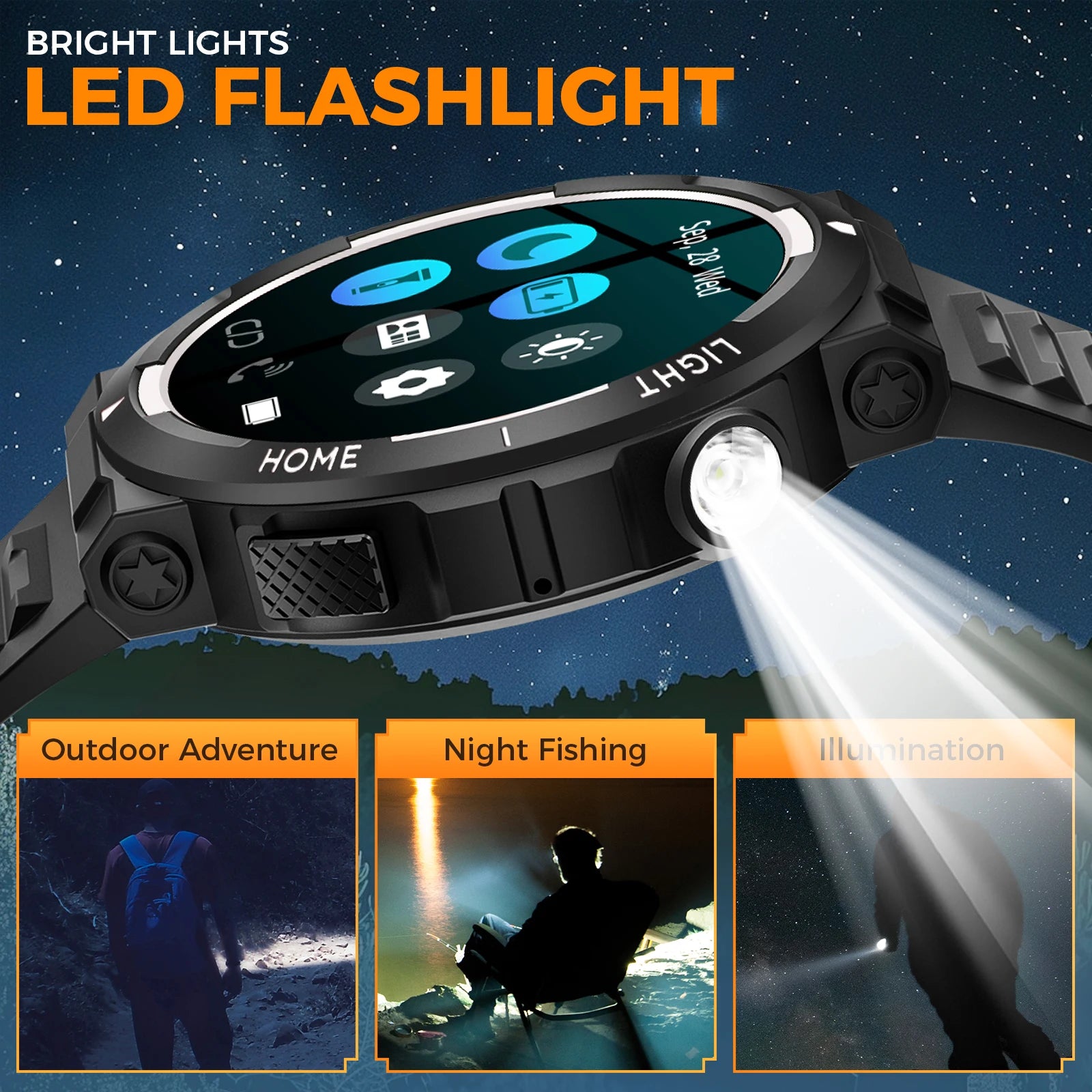 EIGIIS Military Smart Watches for men with LED Flashlight 1.53" IPS Screen Bluetooth Call with 100+ Sports Modes Fitness Tracker