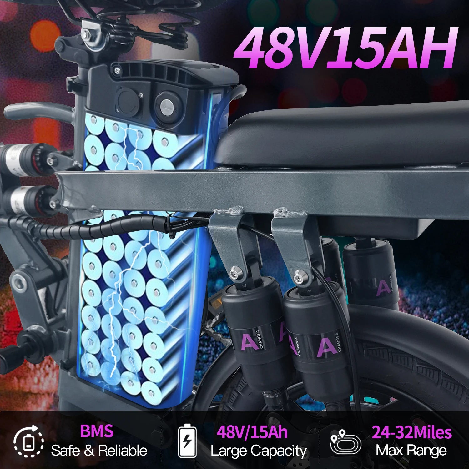EOEOTWO F12 Foldable Electric Bike for Adults,14'' Commuter E Bike,600W Peak,22-25mph,32Miles Range,48V Removable Battery,Bikes
