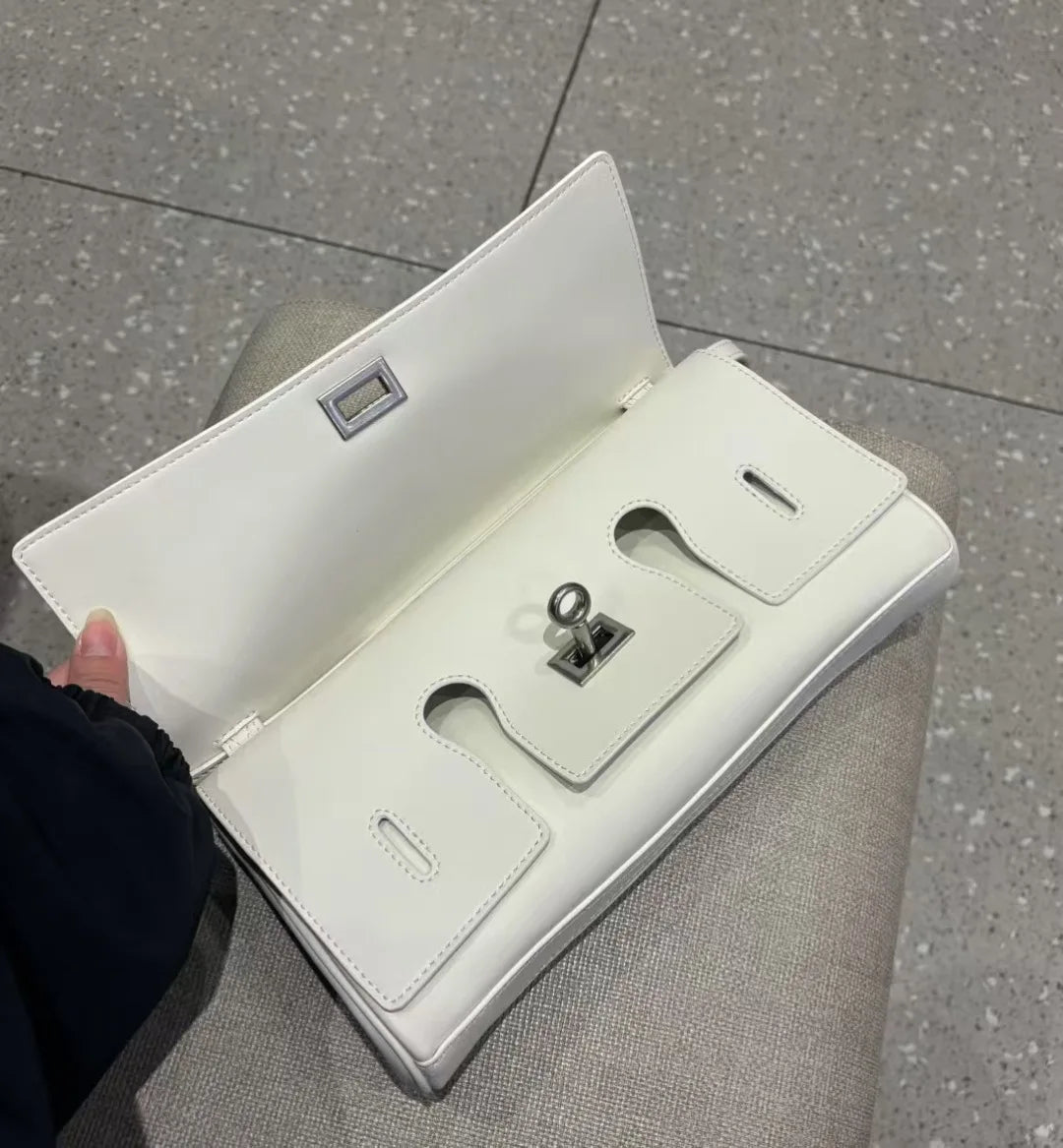 Genuine leather handbag 2025 new niche design lock small square bag vintage motorcycle style cowhide one-shoulder crossbody bag