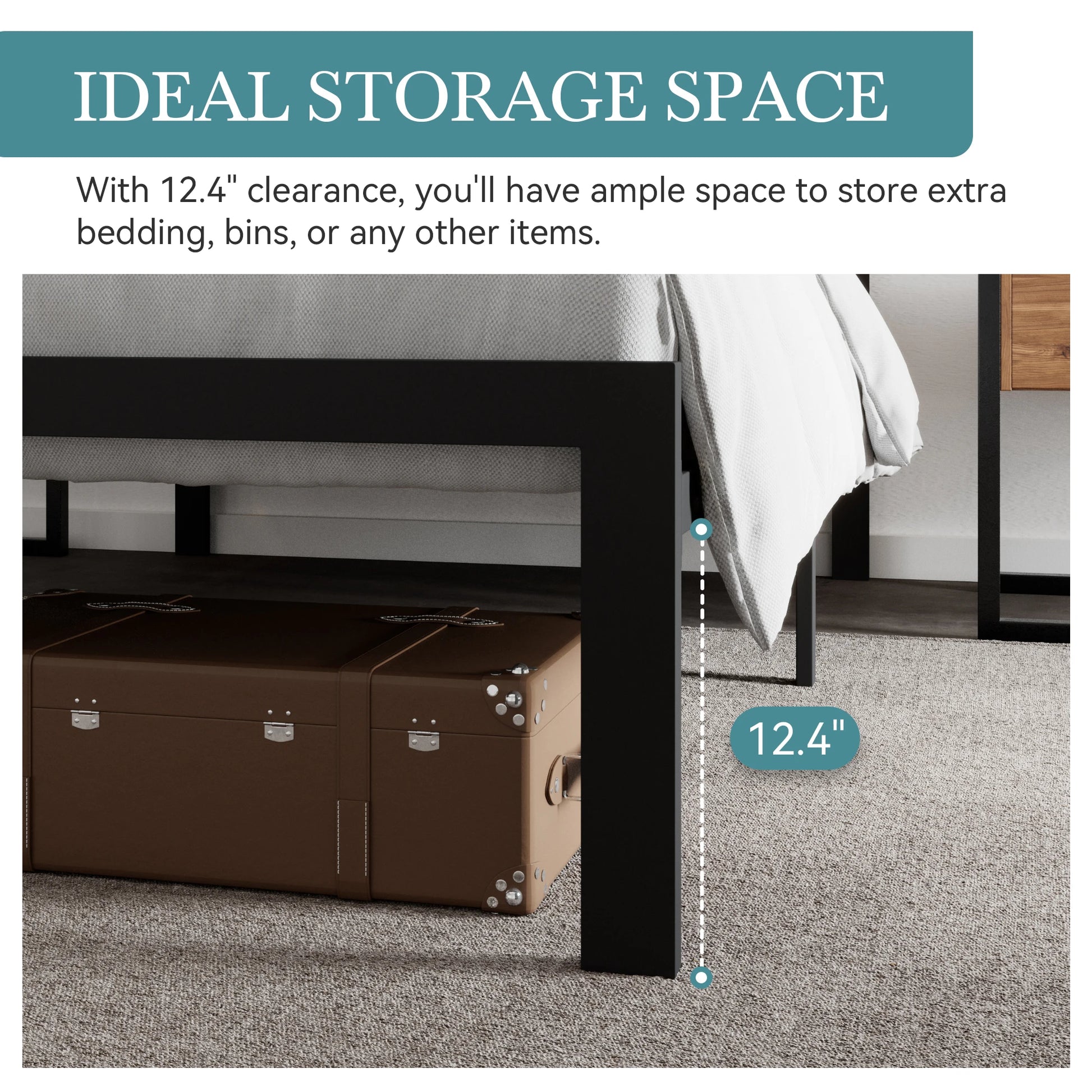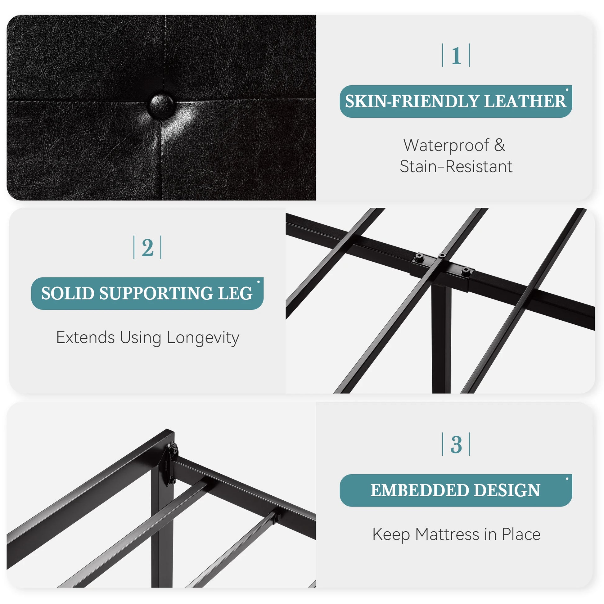 HOOMIC Metal Bed Frame, Upholstered Headboard with Square Stitched, Classic Button Tufted, Faux Leather, No Box Spring Needed