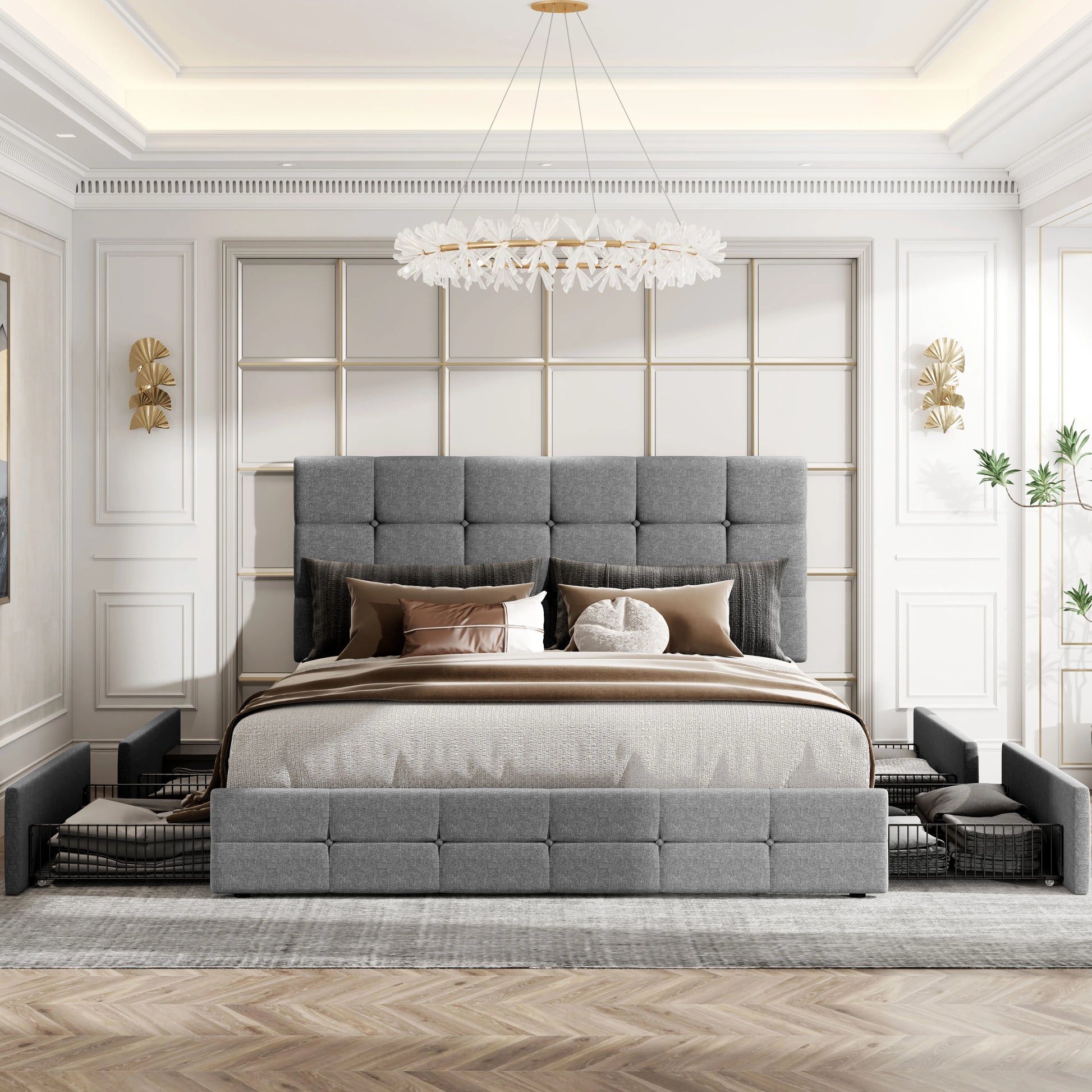 HOOMIC Platform Storage Bed Frame with 4 Drawers, Adjustable Headboard with Square Stitched Button Tufted Design Allewie
