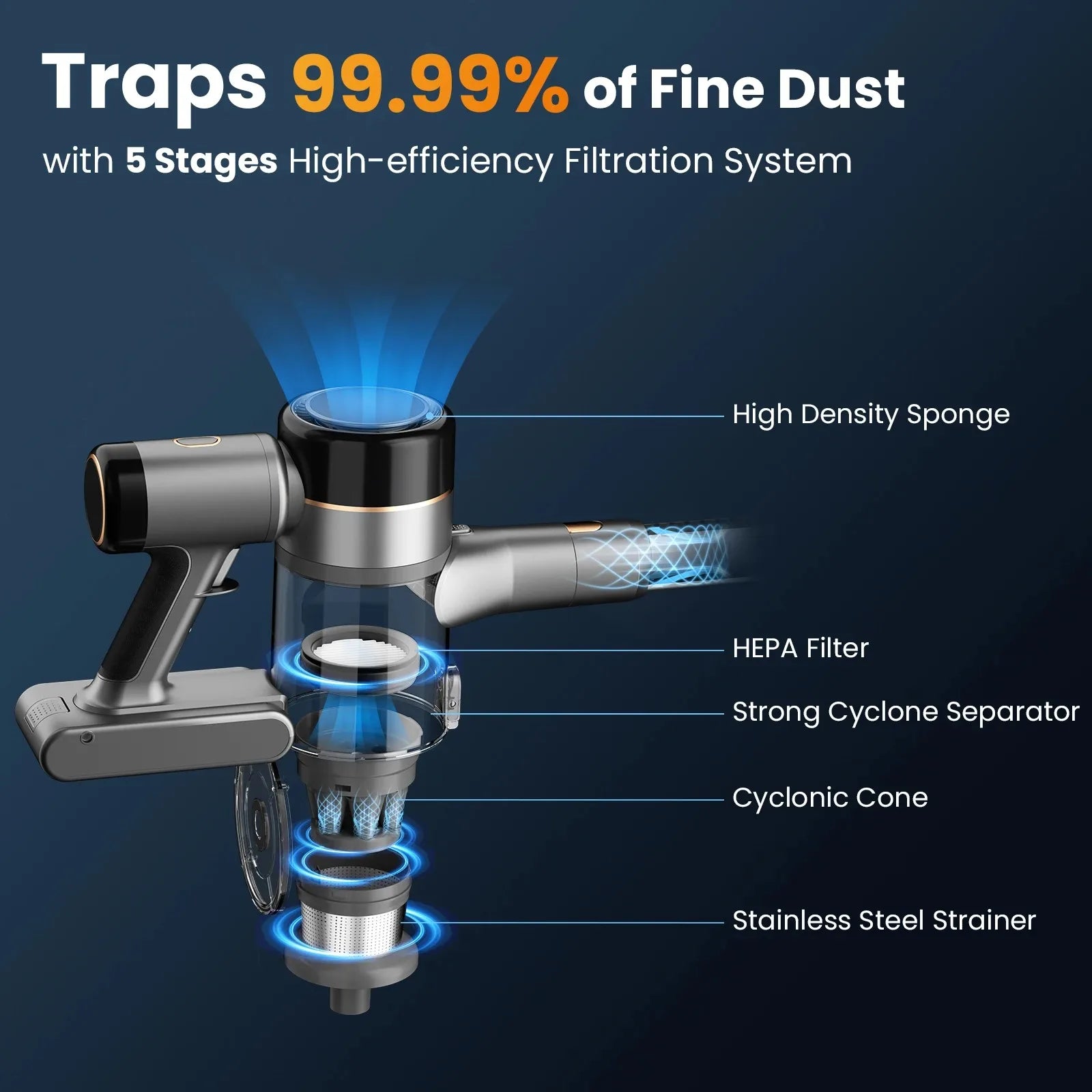 INSE S9 Wireless Vacuum Cleaner 30Kpa Stick Vacuum with LED Display 55min Runtime Smart Adjustment Dual Roller Brushes Cleaning