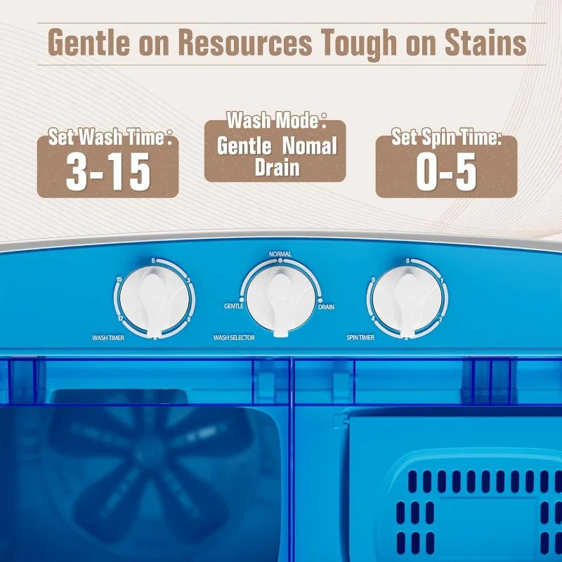 INTERGREAT Portable Waher and Dryer, 12.1lbs Mini Small Washing Machine Combo with Spin Dryer, Compact Twin Tub Laundry Washer