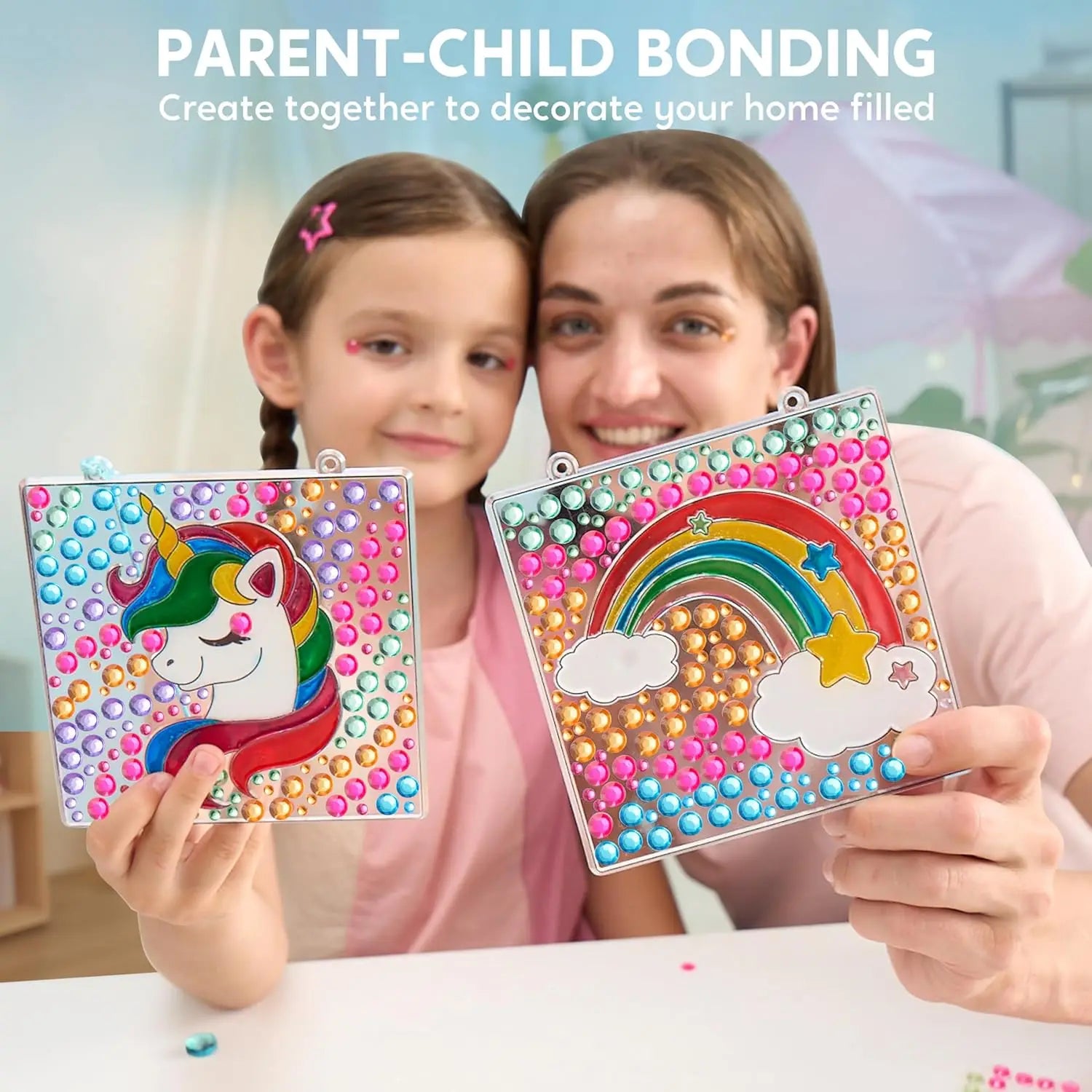JOYFY 4PCS Window Art 2-in-1 Gems and Gels Suncatcher Diamond and Gels Arts & Crafts Toys for Kids Christmas Birthday Gifts