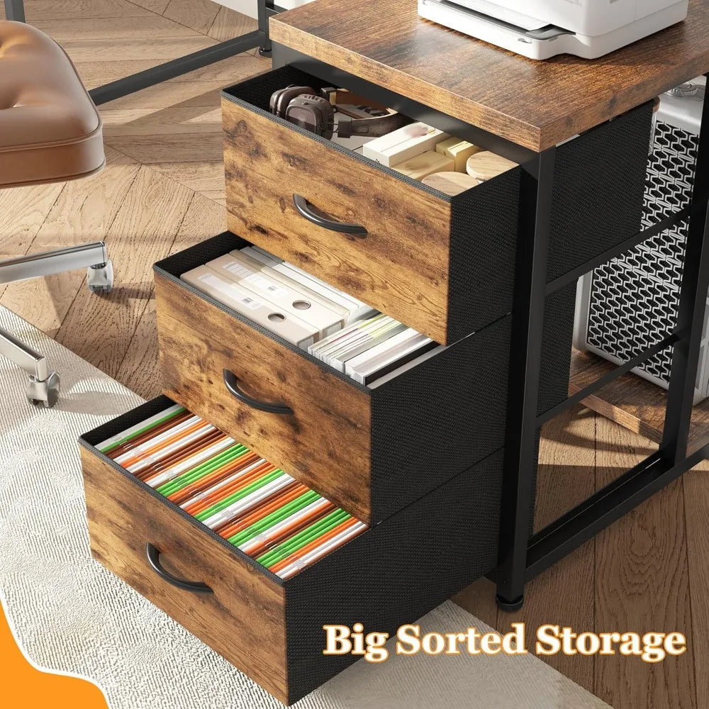 L Shaped Gaming Desk with LED Lights & Power Outlet, 48Inch Corner Computer Desk with Drawers Reversible Home Office Desks with