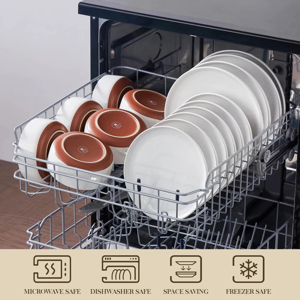 MALACASA TARA 18 Piece Stoneware Dinner Set Ceramic Tableware Layered Glaze Dinnerware Set with 6PCS Dinner Plate/Dessert/Bowl