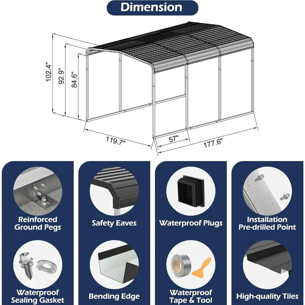 Metal Carport, Heavy Duty Carport Canopy with Galvanized Steel Frame and Roof, Outdoor Storage Shed, Car Tent Garage Shelter