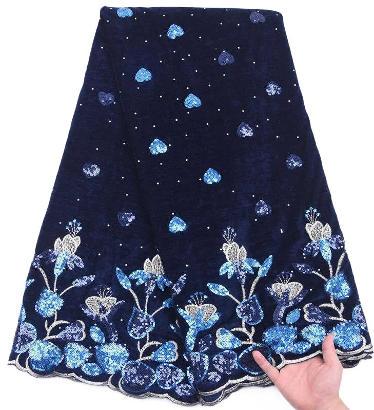 Nigerian Velvet Lace Fabric 2025 High Quality 5 Yards Sequins African Lace Fabric Nigerian Lace for Women Wedding Dress Sewing