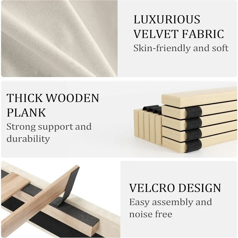 Platform Bed Frame with 51-inch Tall Camelback Headboard & Wingback, Deep Button Tufted Footboard with Nailhead Trim,