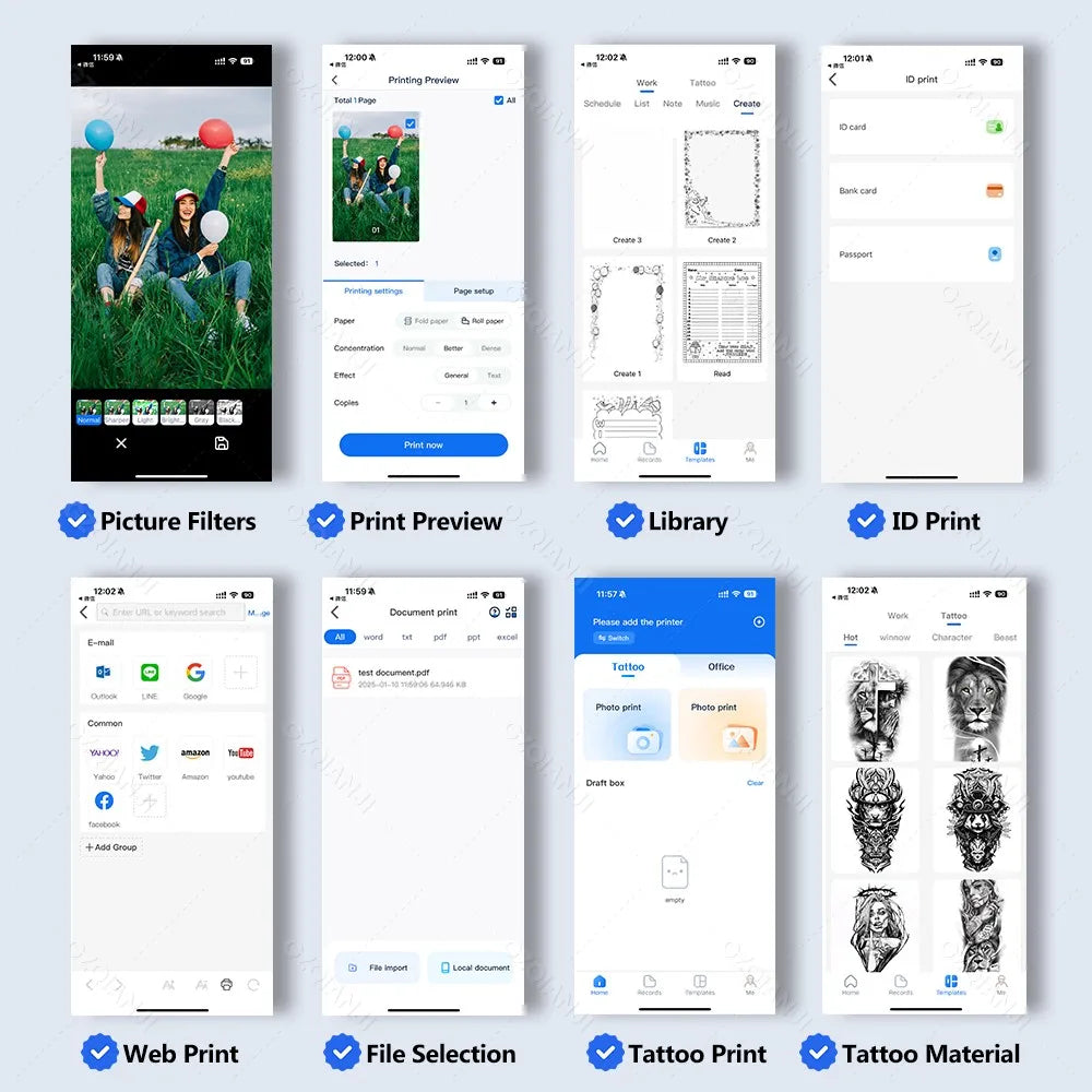 Portable A4 Thermal Printer Bluetooth Photos PDF Document Printing Machine Folded Rolls Paper For Office Work Home School Travel