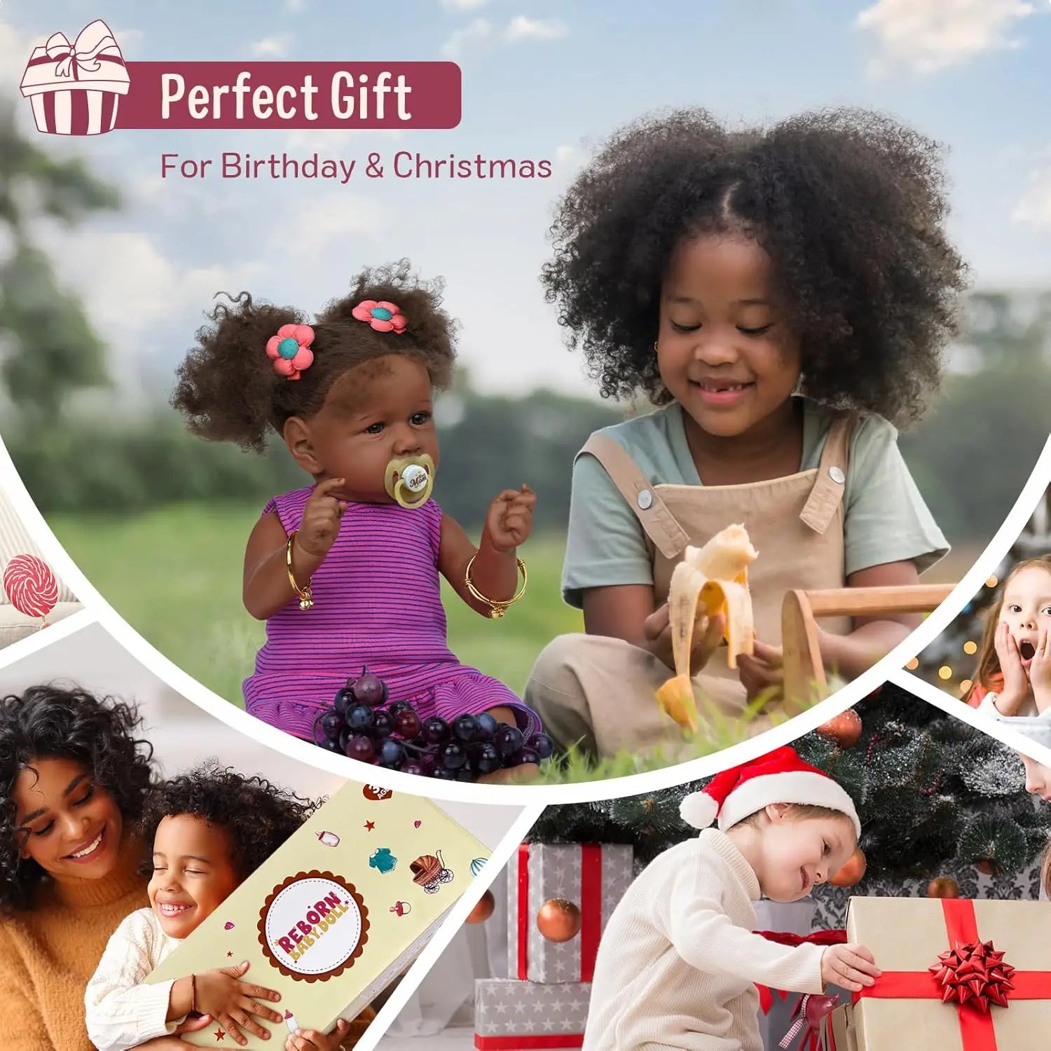 Reborn Baby Dolls Black - 22 Inch Lifelike Soft Body Realistic-Newborn Baby Dolls Taupe Eyes Caramel Skin Tone Orange Crushed