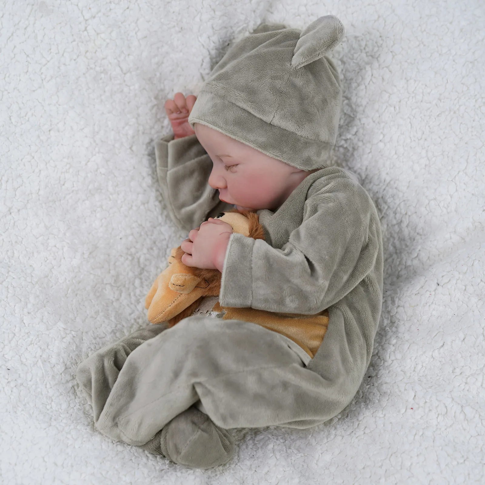 Risbecko 43CM Levi Newborn Baby Doll Reborn Sleeping Soft Silicone Flexible 3D Skin Tone with Visible Veins Hand Paint Hair Doll