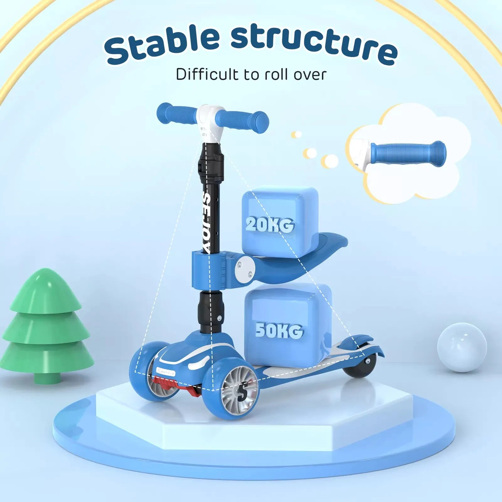 Sejoy Toddler Kick Scooter for Kids with 3 Wheels Extra-Wide Childrens Foldable Toy Scooter with Adjustable Height/Handlebars &