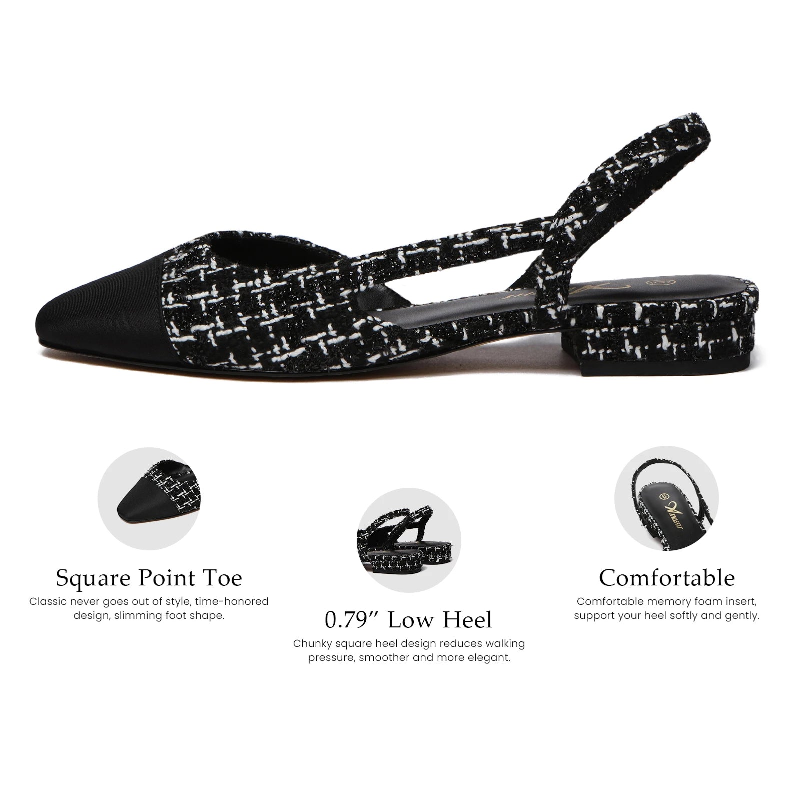 Slingback Flats for Women Square Pointed Toe Two Toned Flats Wedding Pumps for Women