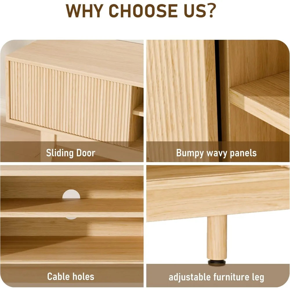 TV Stands for 55 60 65 inch TV, Oak Fluted TV Stand for Living Room Bedroom, Mid Century Modern TV Console Tables, Entertainment