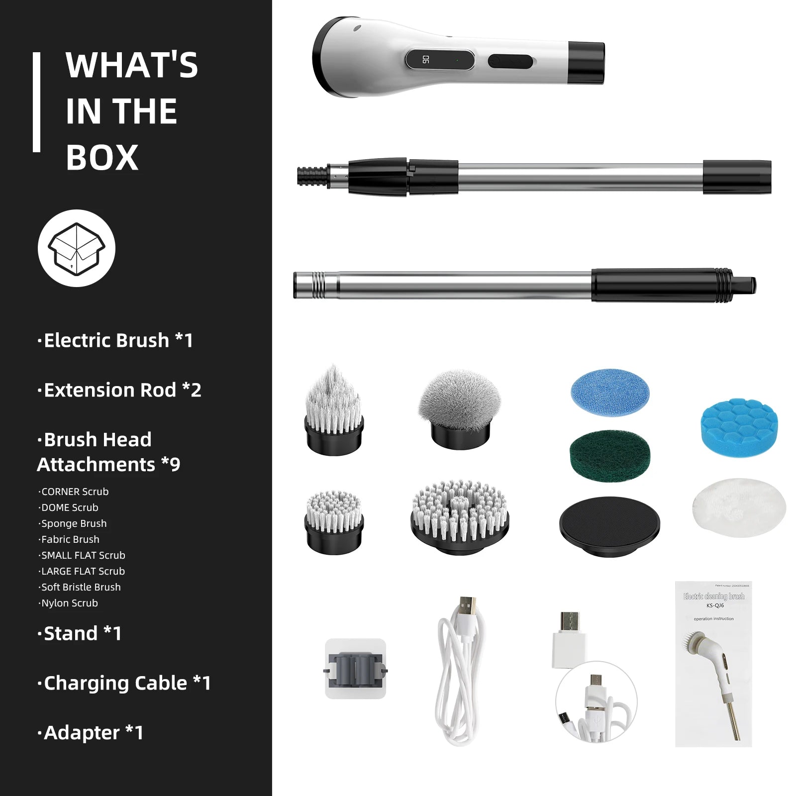 Viladepot 9-in-1 Electric Cleaning Brush Multifunctional Cordless Rotating Cleaning Brush Multiscene