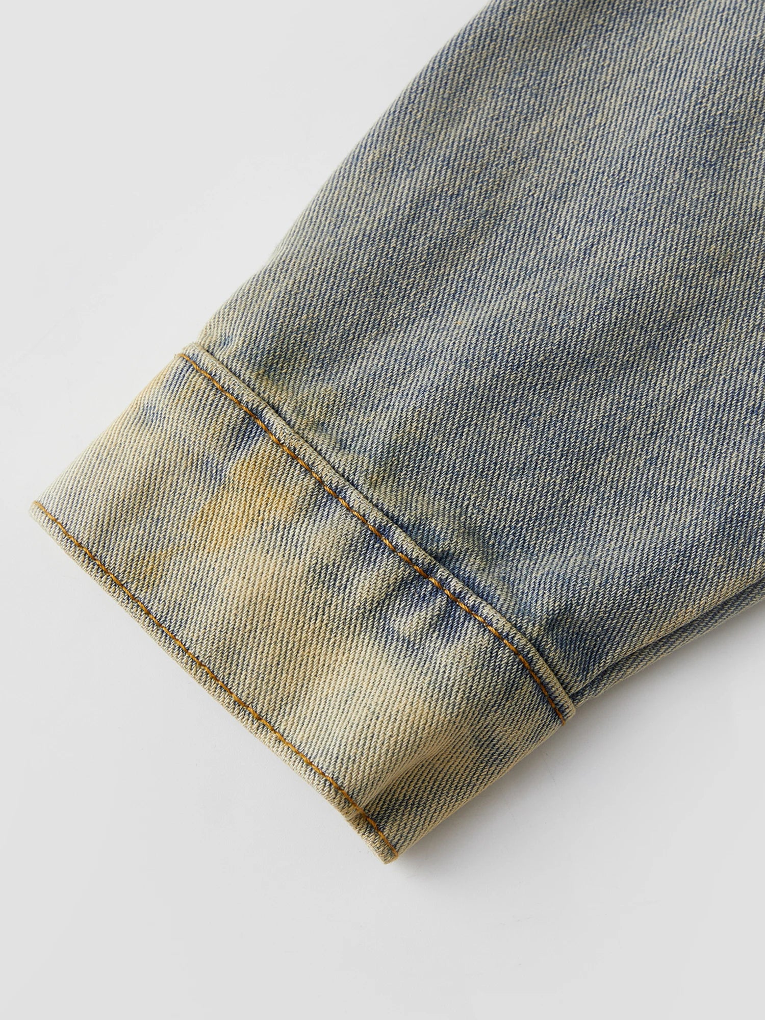 Women s Vintage Oversized Denim Jacket with Flap Pockets and Distressed Details Button Up Long Sleeve Casual Coat