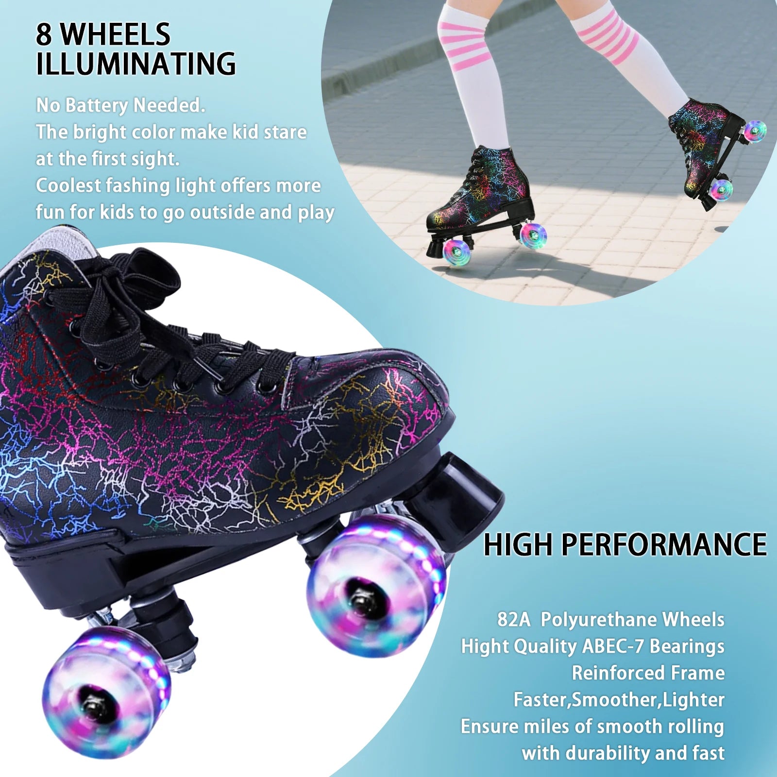 Zebra Printed Roller Skates Quad Skates Sneakers Flash Wheel Shoes Unisex Roller Skates PU Leather Roller Skates Skating Shoes